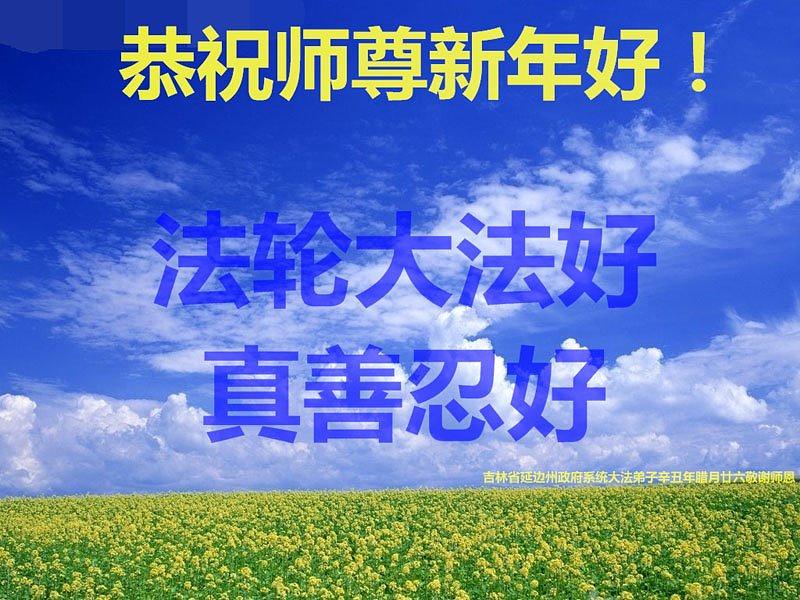 Falun Dafa se širi nadaleko već skoro 30 godina, privlačeći učenike iz svih sfera života i društvenih klasa. U ovom izveštaju, Falun Dafa praktikanti koji rade u kineskim državnim službama, uključujući organe za sprovođenje zakona, tužilaštva, sudove i pravosudne organe, uputili su svoje najbolje želje majstoru Liju, osnivaču Falun Dafe, za srećnu kinesku Novu godinu.
