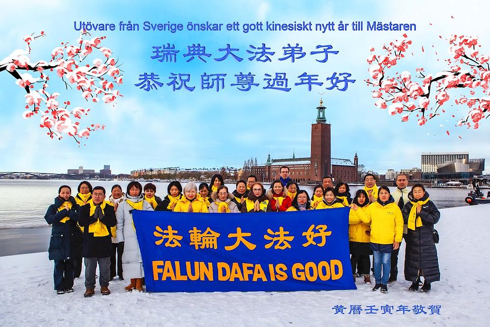 „Utövare från Sverige önskar ett gott kinesiskt nytt år till Mästaren” (Praktikanti iz Švedske žele Učitelju sretnu Kinesku Novu godinu)