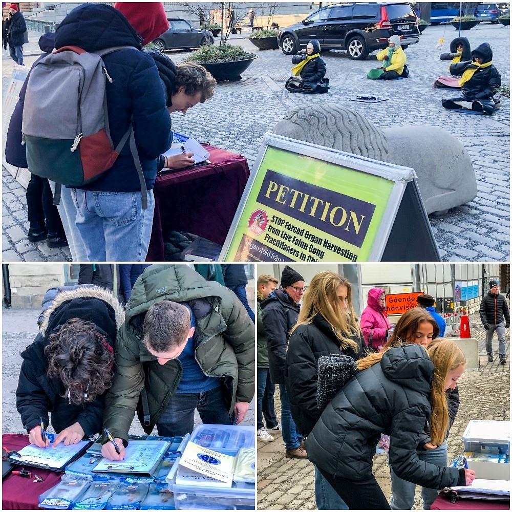 Uprkos zimskom vremenu, Falun Dafa praktikanti u Štokholmu nastavljaju održavati aktivnosti svakog petka i subote na Mynttorgetu, javnom trgu pred zgradom švedskog parlamenta. Oni javnost upoznaju sa ovom duhovnom praksom i govore o njenom progonu koji se i sada dešava u Kini.