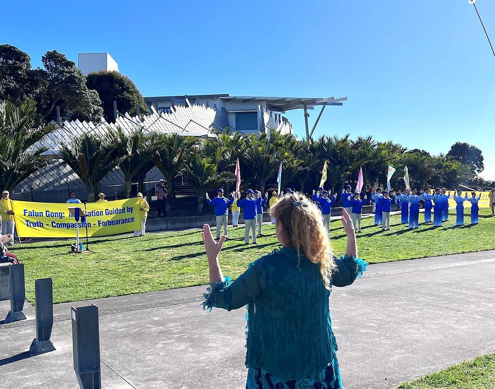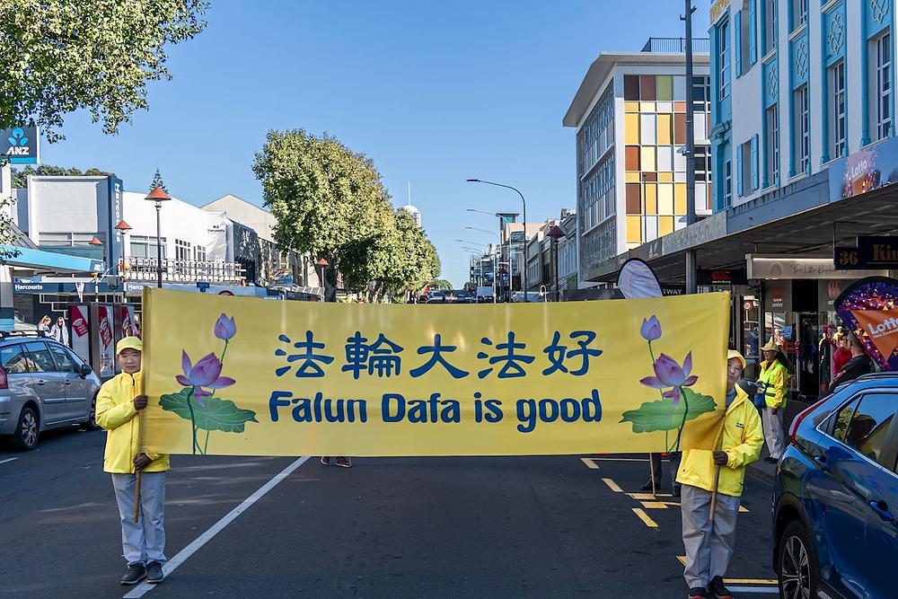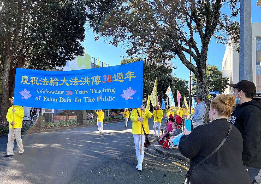 Prije trideset godina, u maju mjesecu 1992. godine, osnivač Falun Dafa gospodin Li Hongzhi je javnosti predstavio ovu praksu. Kako bi proslavili ovu posebnu priliku, novozelandski praktikanti na zapadnoj obali Sjevernog ostrva su se okupili u New Plymouthu 28. maja kako bi paradom i skupom zajednici predstavili Falun Dafa.