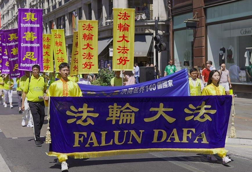 Dana 20. jula 1999. KPK (Komunistička partija Kine) je pokrenula progon širom zemlje da bi iskorenila Falun Dafu i praktikante. Svake godine praktikanti održavaju događaje kako bi rekli ljudima o progonu i pozvali na njegovo okončanje. Praktikanti su 16. jula 2022 održali paradu i miting u Londonu. Rekli su da će nastaviti da mirno protestuju i šire svest do dana kada progon ne prestane.