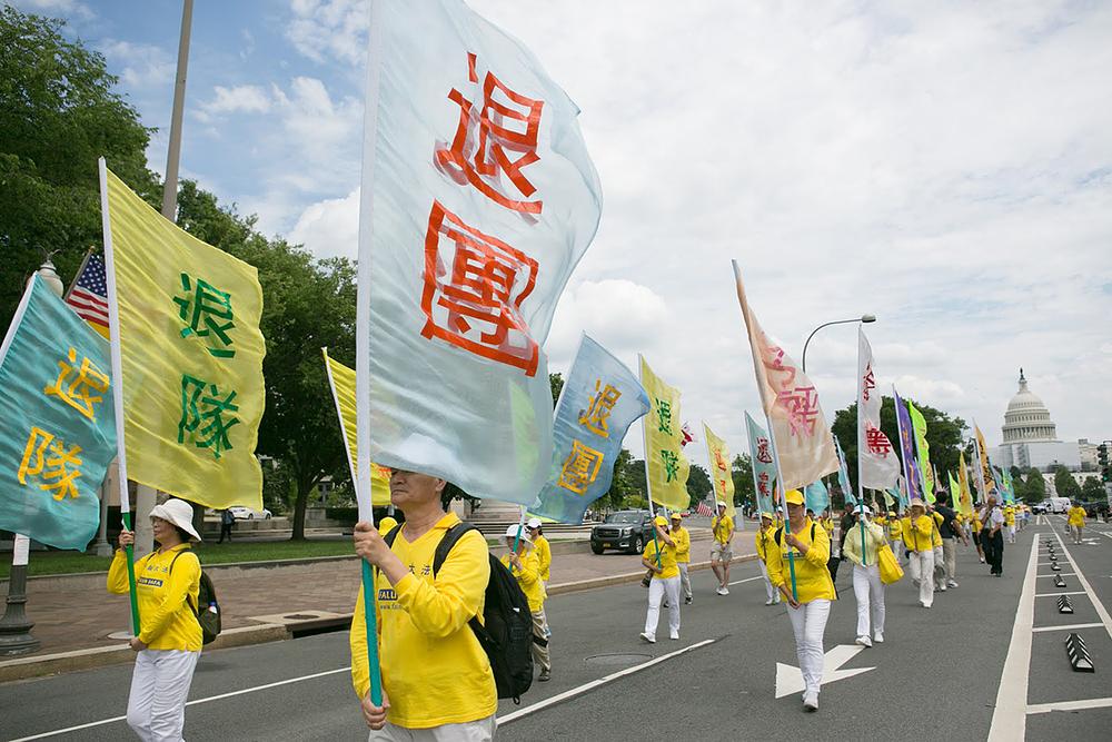 Približno 2.000 Falun Dafa praktikanata je, popodne 21. jula, održalo paradu u Washingtonu D.C. u znak protesta protiv dvadeset trogodišnjeg progona koji vrši Komunistička partija Kine (KPK). Praktikanti su pozvali na trenutni prekid zločina KPK.