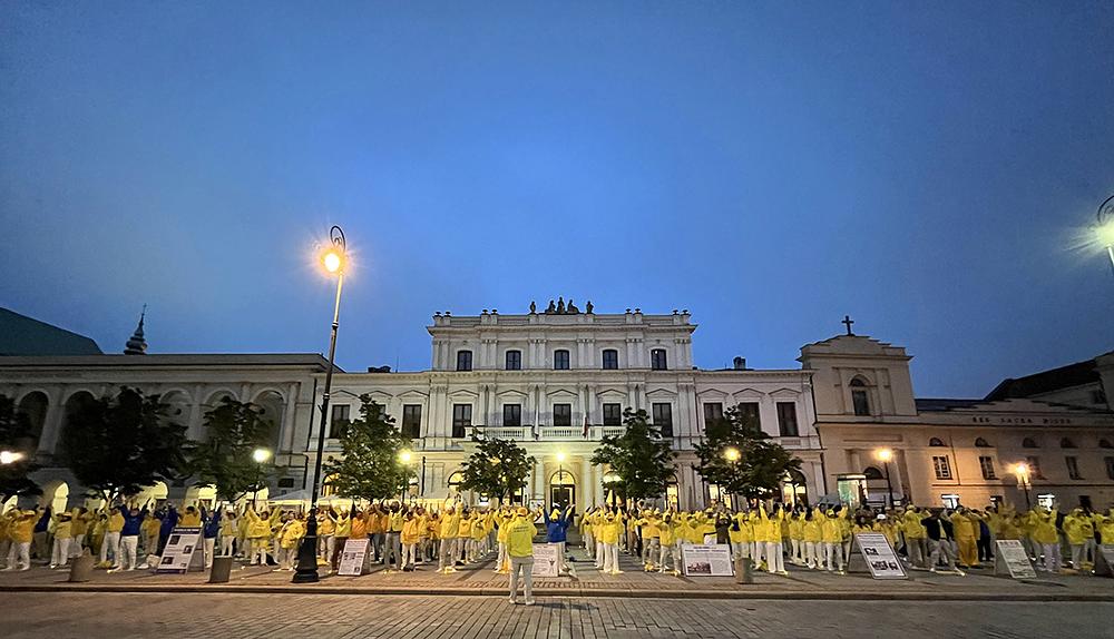 Falun Dafa praktikanti su se okupili u Krakovskom przedmiješću, jednoj od najstarijih poslovnih ulica u Varšavi, da bi 9. i 10. septembra održali bdenje uz sveće. Odali su počast praktikantima koji su stradali od posledica progona u Kini i pozvali poljsku vladu i javnost da pomogne da se okonča 23-godišnji progon.