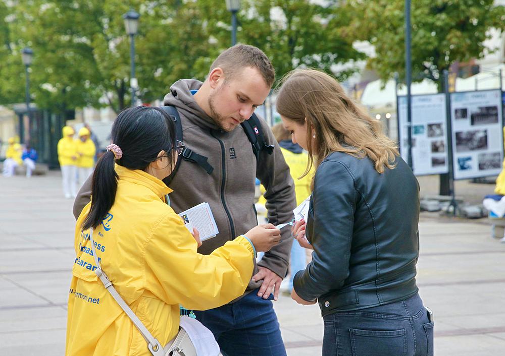 „Nakon što sam pročitala letak i saznala da KPK progoni Falun Dafa praktikante, odlučila sam da potpišem peticiju.“ Ekonomista u penziji, ona je živela u Poljskoj dok je ona bila komunistička zemlja, i kaže da su komunisti na sve načine progonili ljude koji se ne slažu sa partijom.