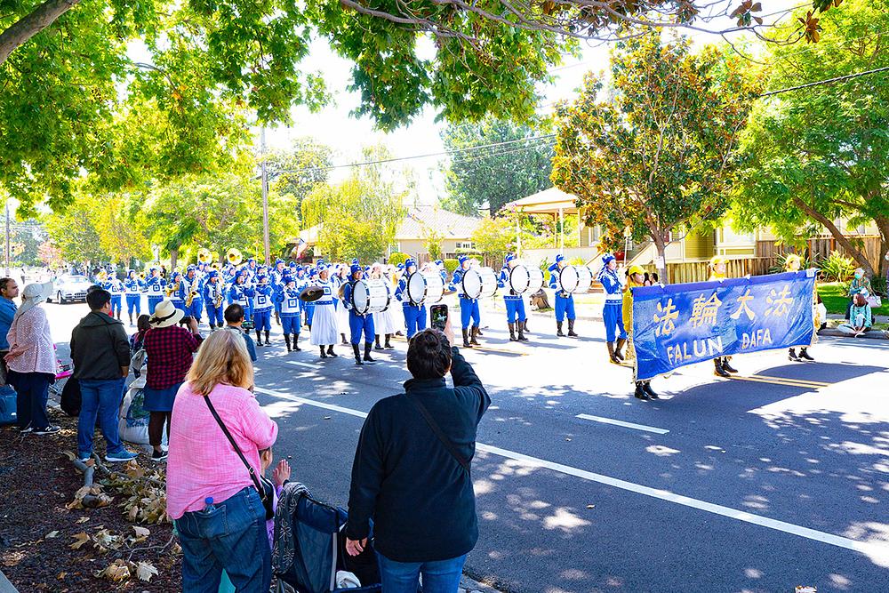 Kad su praktikanti marširajući prolazili, stanovnik Santa Clare Javier je podigao obje ruke i klicao. Rekao je: „Volim ovu grupu! Falun Dafa je nevjerojatan! Marširali su u liniji, izgledaju puni energije, a boje su tako jarke. Sve je savršeno.“