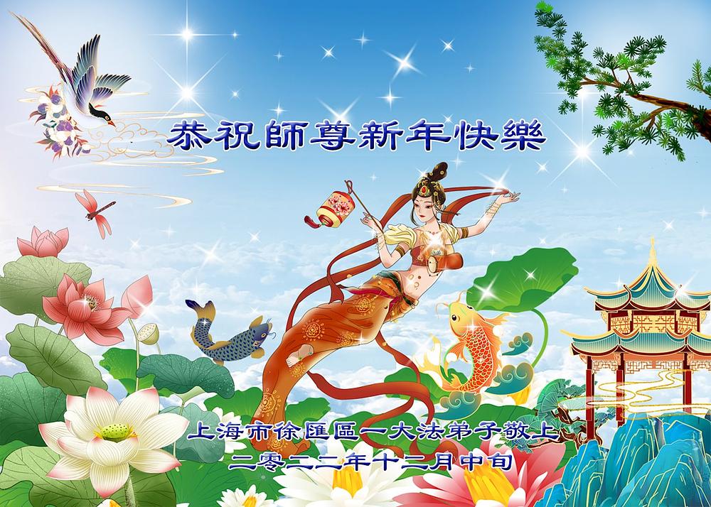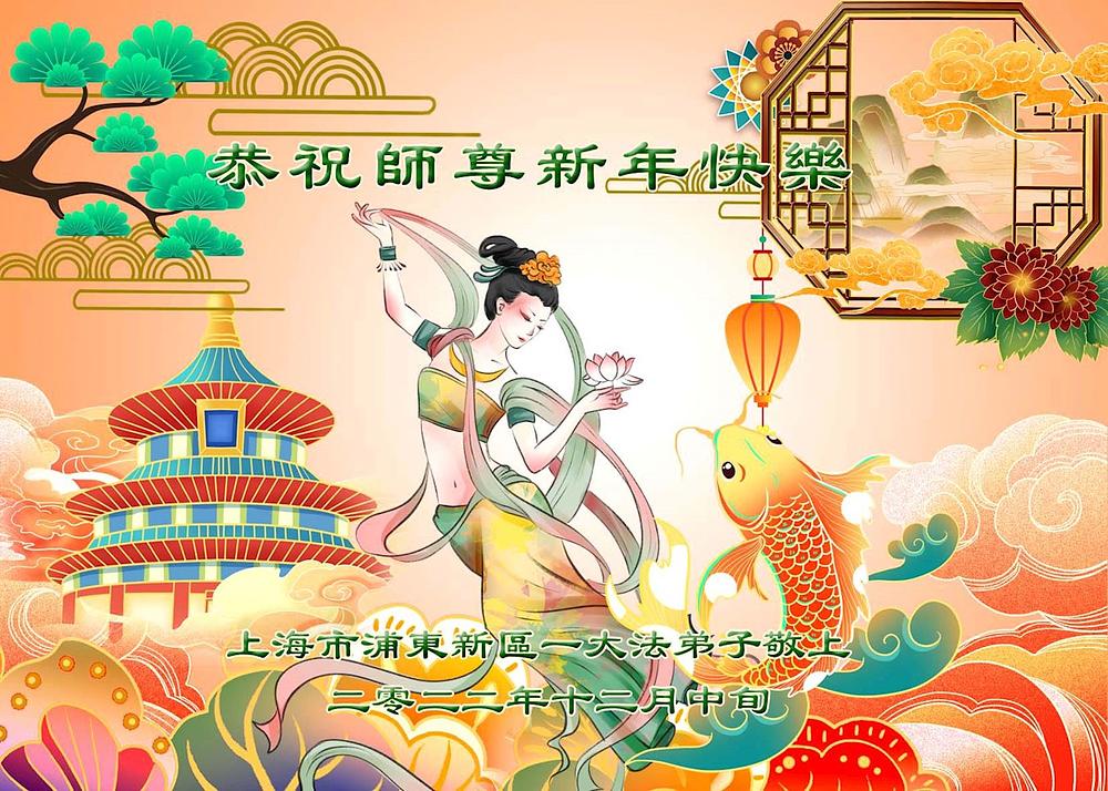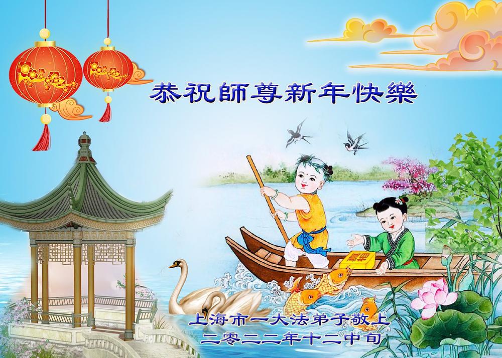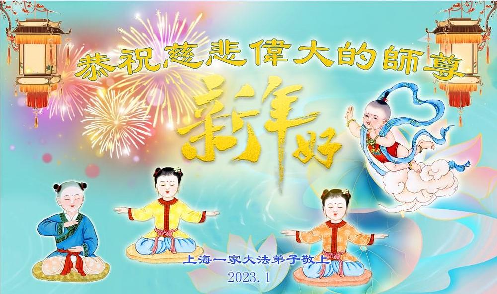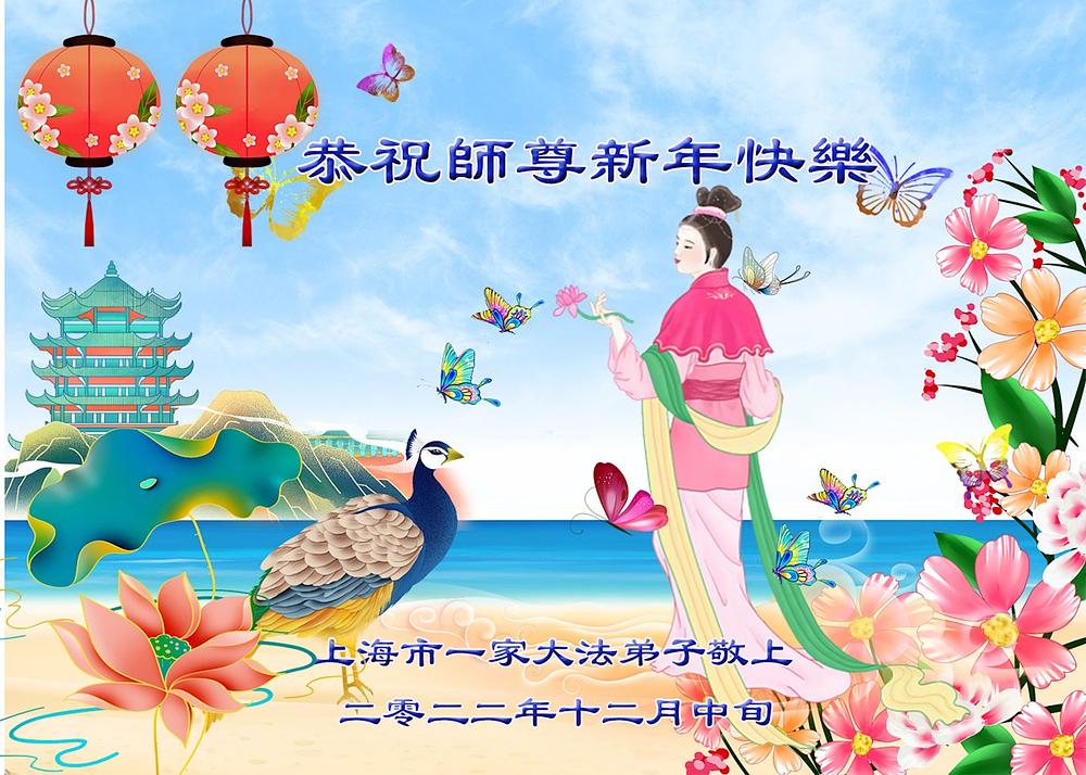 Praktikanti Falun Dafe iz grada Šangaja s poštovanjem žele Učitelju Li Hongdžiju srećnu Novu godinu (19 čestitki)