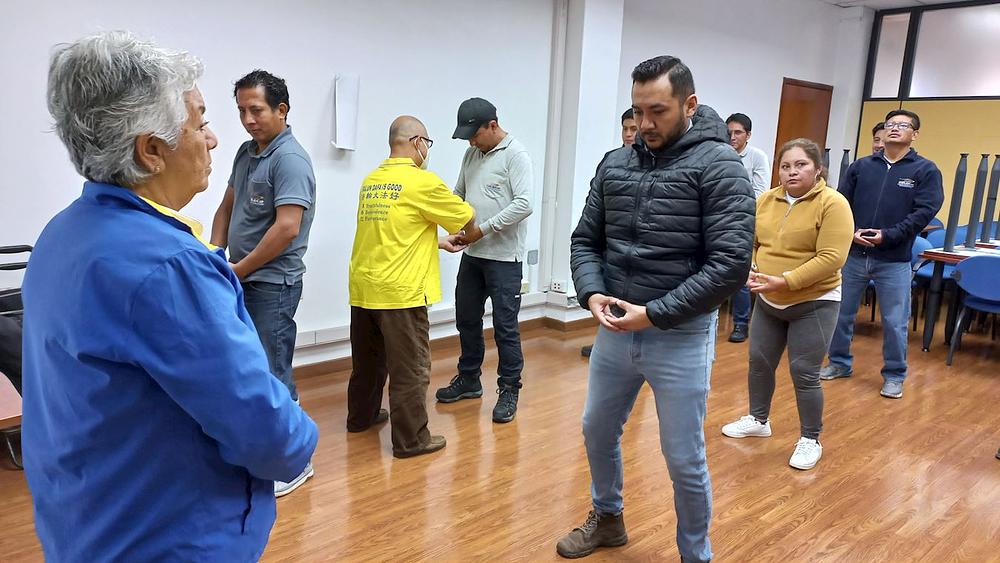 Kao rezultat napora lokalnih praktikanata, od kolovoza 2022. do ožujka ove godine, škola u južnom dijelu glavnog grada, pružatelj zdravstvenih usluga za vladu južnog Quita i elektrodistribucijska tvrtka pozvali su praktikante da predstave Falun Dafa njihovim zaposlenicima i poduče ih vježbe. Skoro 300 ljudi je prisustvovalo radionicama i učilo o Falun Dafa.