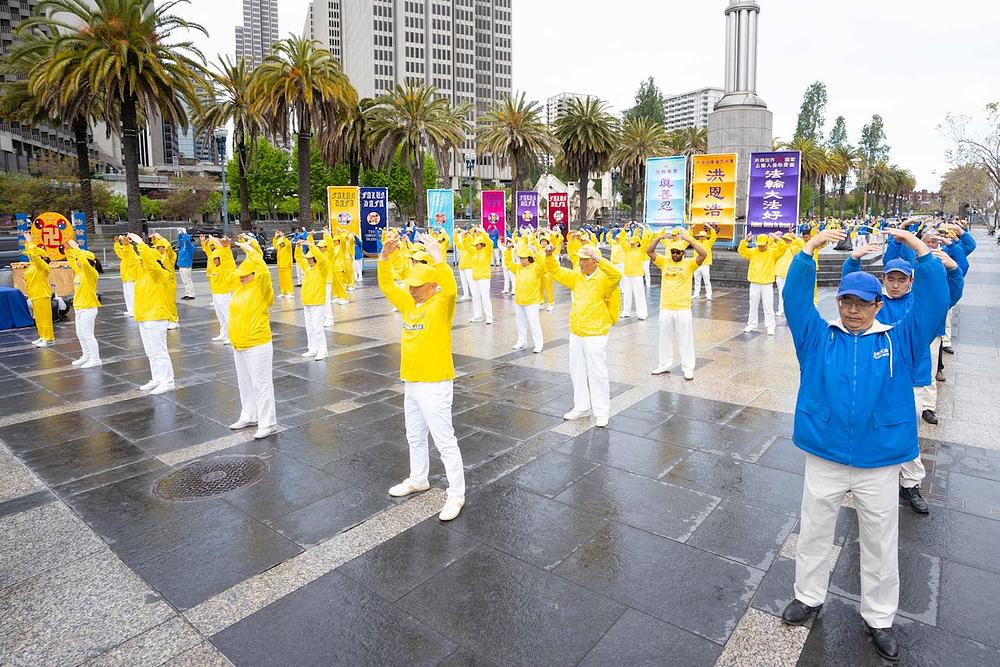 U 9 ujutro praktikanti su započeli dnevne aktivnosti s grupnim vježbama ispred Ferry Building. Mnogi su turisti zastali kako bi saznali više o praksi nakon što su vidjeli nježne, opuštajuće vježbe. Nekoliko ljudi koji ne prakticiraju Falun Dafa također su sudjelovali u povorci.