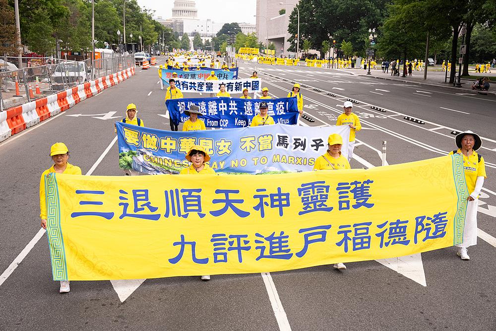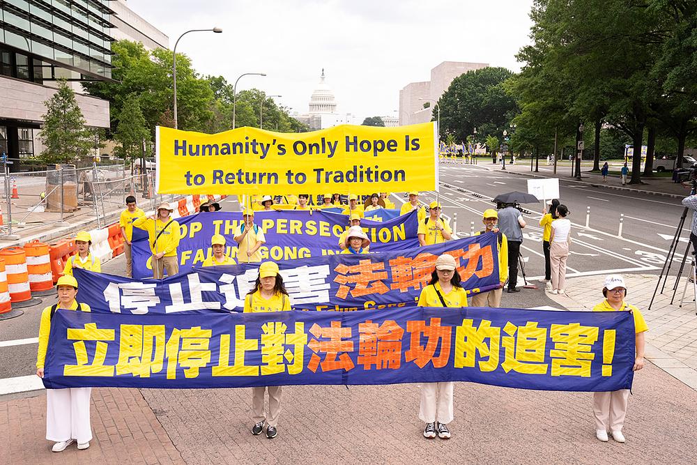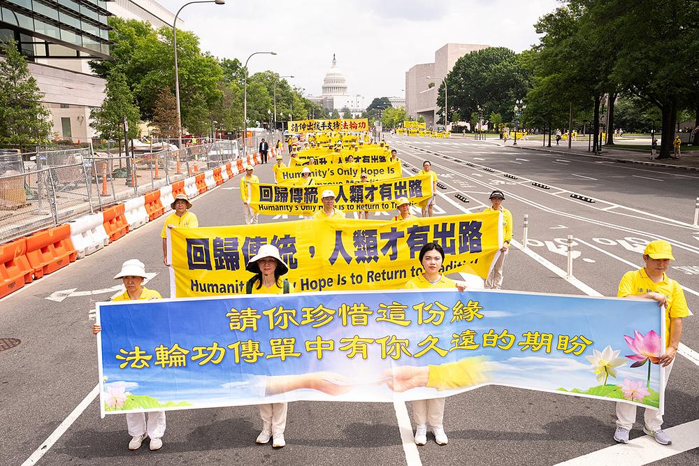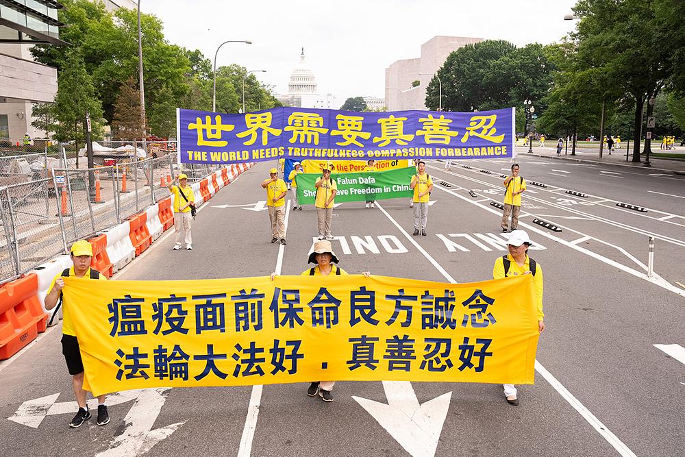 Falun Dafa praktikanti održali su marš u glavnom gradu SAD, Washington DC, 20. srpnja 2023., u znak protesta protiv progona dugog 24 godine od strane Komunističke partije Kine (KPK).