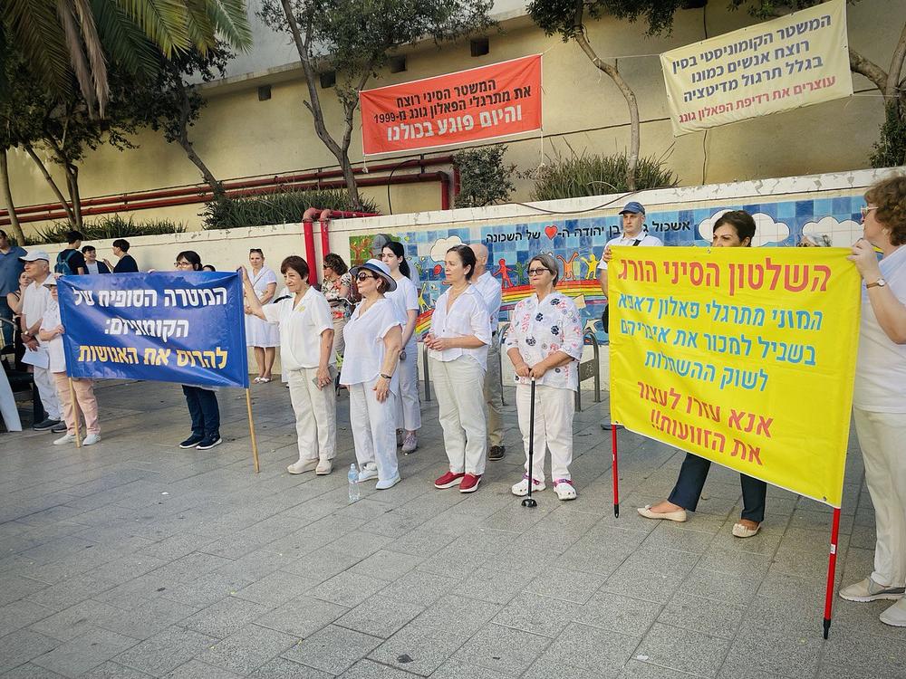 Praktikanti su, 20. jula 2023., držali transparente na hebrejskom sa informacijama o progonu u blizini kineske ambasade u Tel Avivu