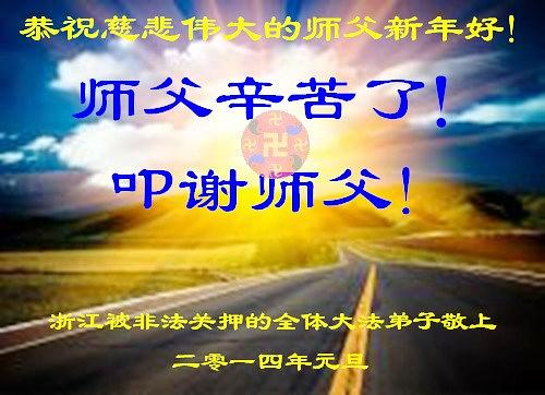 Posebno je jedna praktikantkinja, nedavno puštena iz ženskog zatvora Šandong iskoristila priliku nadolazeće 2014 godine da poželi Učitelju srećnu Novu godinu. U svojoj čestitci je napisala: “Ova praktikantkinja je nezakonito bila u zatvoru 7 godina i ja sam ostala čvrsta u svom verovanju. Zajedno sa još nekoliko praktikanata u istom zatvoru, ja sam se odupirala progonu, i naša sredina za kultivaciju se popravila. Pre nego što sam izašla, kolege praktikanti su mi tražili da u njihovo ime pošaljem čestitku Učitelju. Obećala sam da ću to i učiniti.”