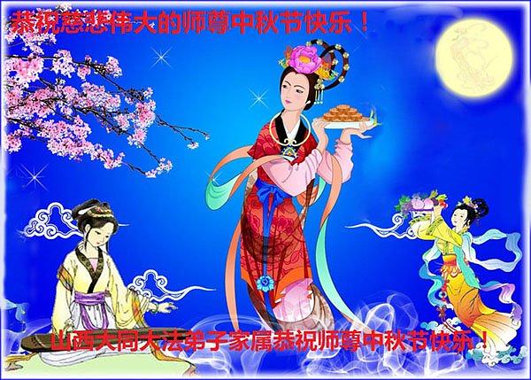 Dok se bliži Praznik sredine jeseni (29. septembra), mnoge pristalice Falun Dafe u Kini uputile su čestitke da požele Učitelju Liju, osnivaču Falun Dafe, srećan praznik. Ioni su iskazali radost što su konačno prozreli laži koje plasira Komunistička partija Kine (KPK) i podelili svoja iskustva u poistovećivanju sa principima Falun Dafe, što su Istinitost-Blagost-Trpeljivost.