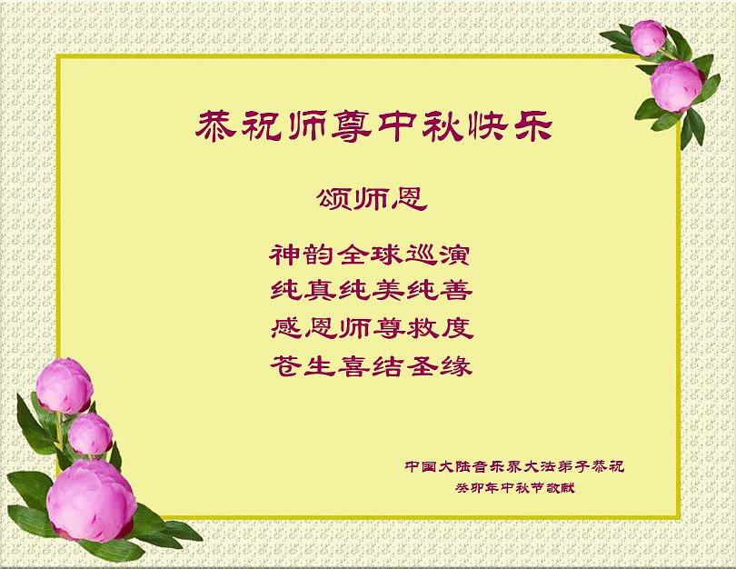 Tokom prelaznog perioda Fa ispravljanja u ljudskom svetu, stigao je još jedan Praznik sredine jeseni (koji se naziva i Mesečev festival). Falun Dafa praktikanti iz celog sveta šalju čestitke Minghuiju slaveći ovu tradiciju i prenoseći svoje dobre želje Li Hongdžiju, osnivaču Falun Dafe.