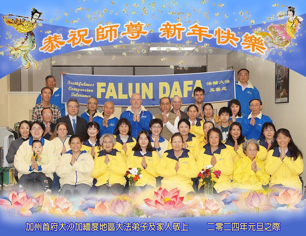 Falun Dafa praktikanti i njihove obitelji u Sacramentu, glavnom gradu Kalifornije, s poštovanjem žele Učitelju sretnu Novu godinu!