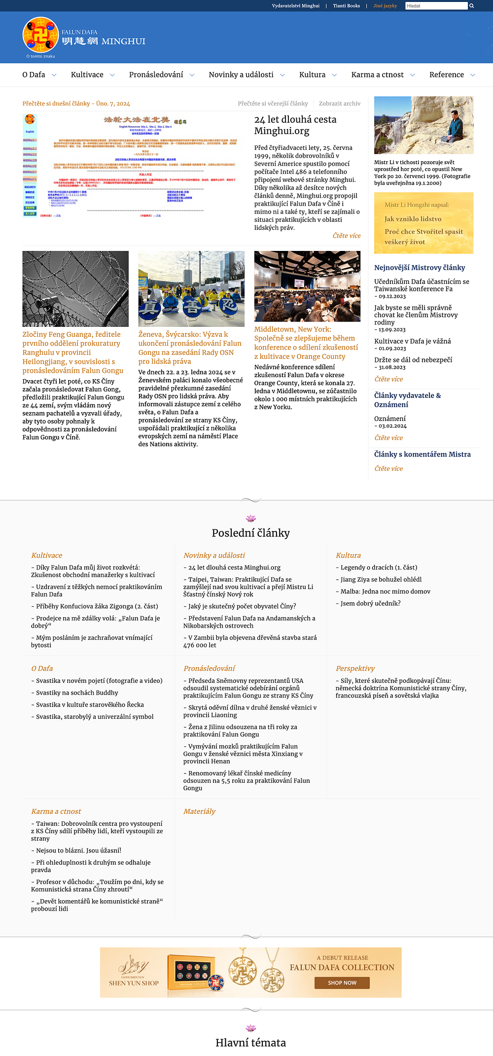 Češko izdanje web stranice Minghui (https://cs.minghui.org/) službeno je pokrenuto u veljači 2024. Nadamo se da će poslužiti kao platforma za praktikante, za razmjenu iskustava i predstavljanje Falun Dafa u Češkoj Republici. Ovo je 23. jezik na koji je prevedena glavna kineska web stranica.