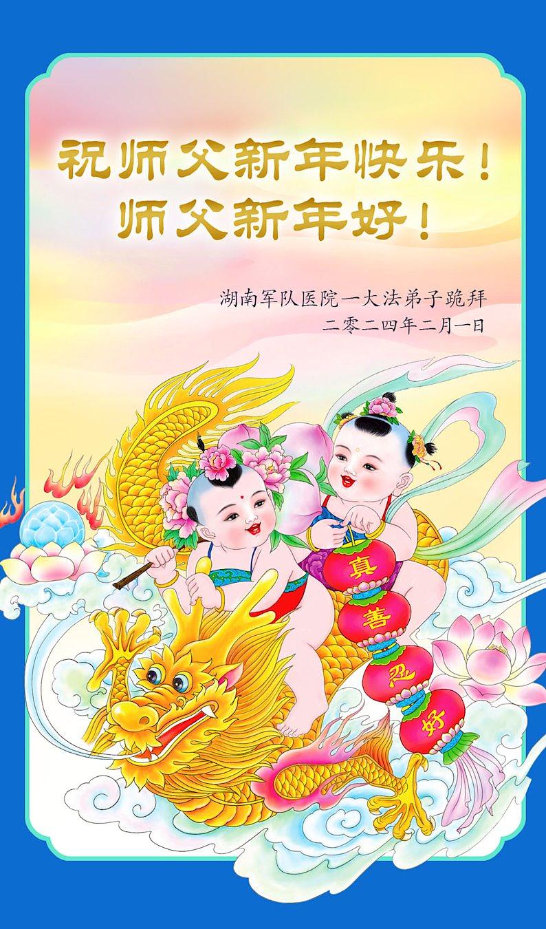 Povodom posebne prigode kineske Nove godine 2024., mnogi od ovih praktikanata također šalju svoje najiskrenije čestitke Učitelju Li Hongzhiju, osnivaču Falun Dafa. Zahvalni su Učitelju Liju na zaštiti i spasenju. Obećali su da će biti bolji u svojoj kultivaciji i pomoći većem broju ljudi razumijeti činjenice o Dafa.
