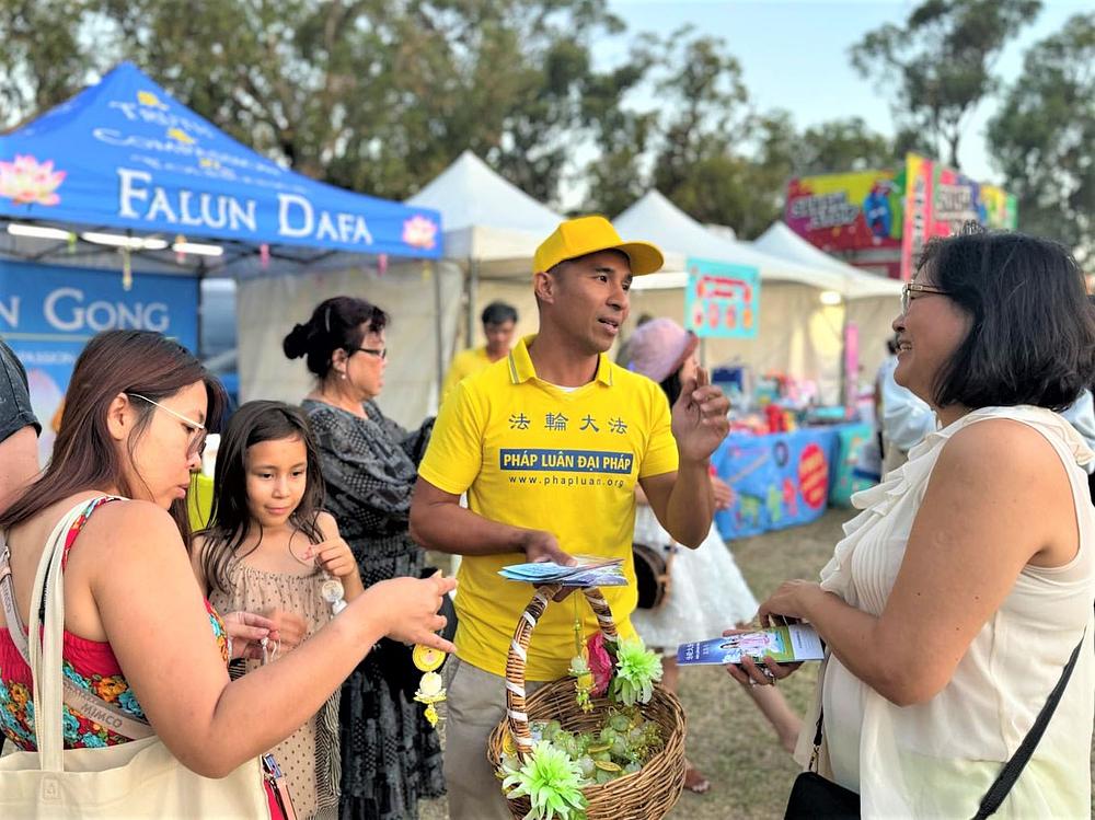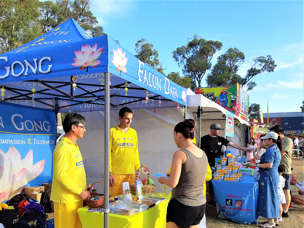 Vijetnamska zajednica održala je proslavu kineske Nove godine 16. i 17. februara u Pertu, Australija, i praktikanti su pozvani da učestvuju i predstave Falun Dafu. Australijski senator se zaustavio na njihovom štandu da izrazi svoju podršku.
