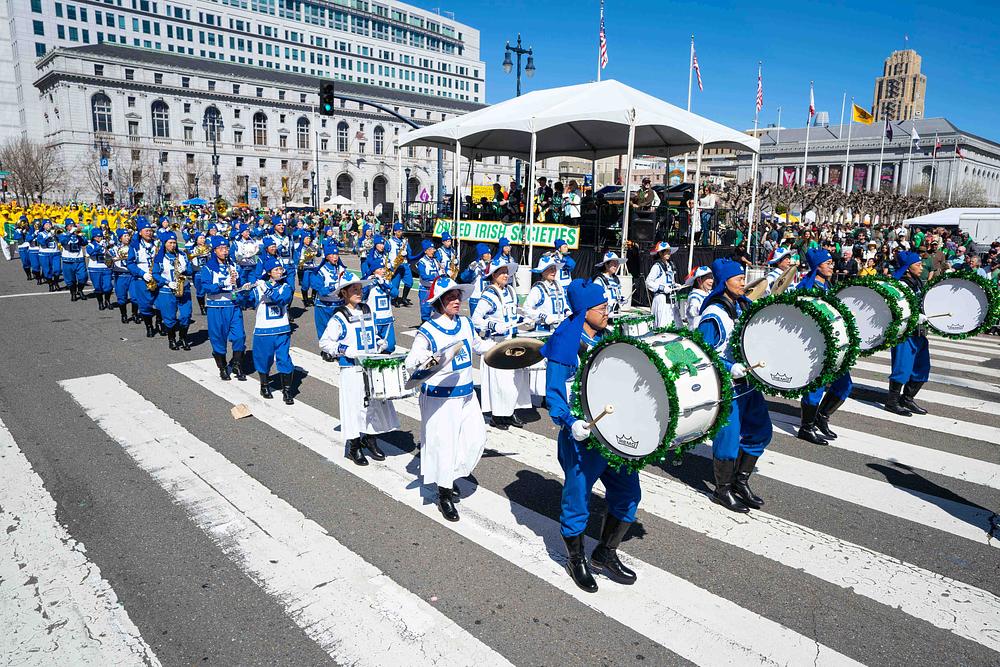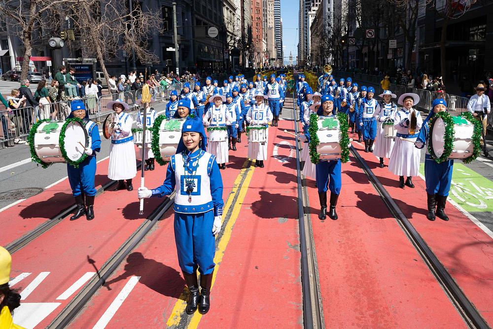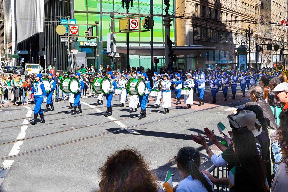 Grad San Francisco bio je ispunjen prazničnim ozračjem, a ulice su bile prepune gledatelja parade. Falun Dafa grupa uključivala je tim za demonstraciju vježbi, tim za bubnjare i Tian Guo Marching Band iz Zapadnih SAD. Do sada, Falun Dafa grupa drži rekord kao najveći tim u gradskoj povorci za Dan svetog Patrika. Mnogi su gledatelji plesali uz glazbu koju je svirao Tian Guo Marching Band, neki su se radosno fotografirali s praktikantima, a drugi su im izražavali podršku.