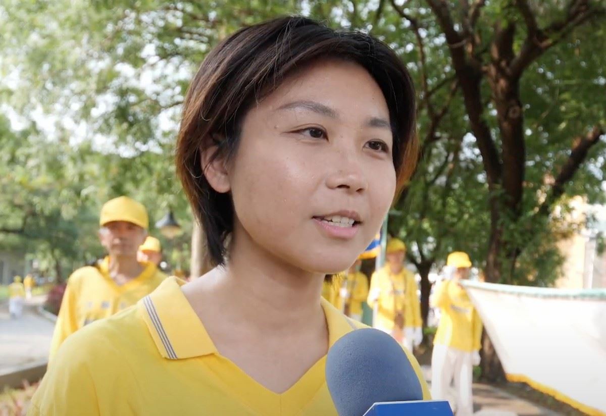 Kako je odrastala prakticirajući kultivaciju, često je u knjizi Zhuan Falun pronalazila odgovore o tome koja je svrha života. Učestvovala je u paradi kako bi izrazila svoju zahvalnost Učitelju Liju. Ona se takođe nada da će ljudi nakon što su gledali biti inspirisani da preuzmu Falun Dafa.