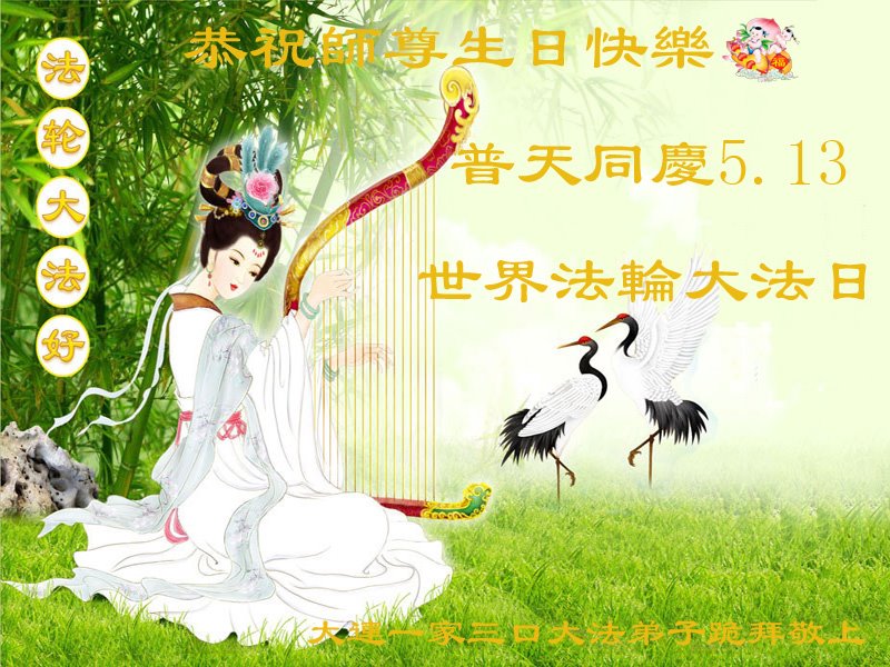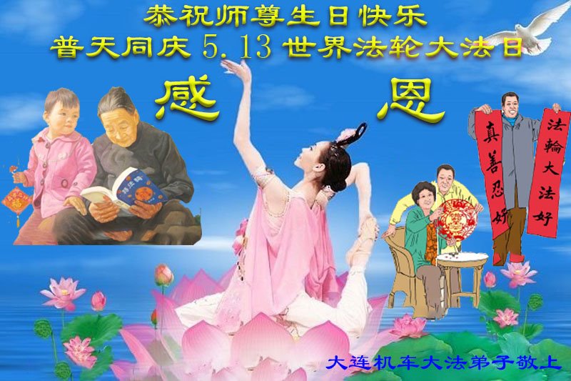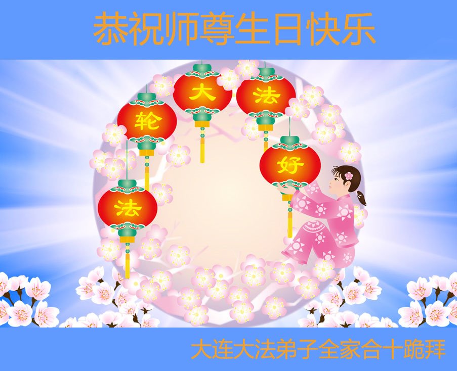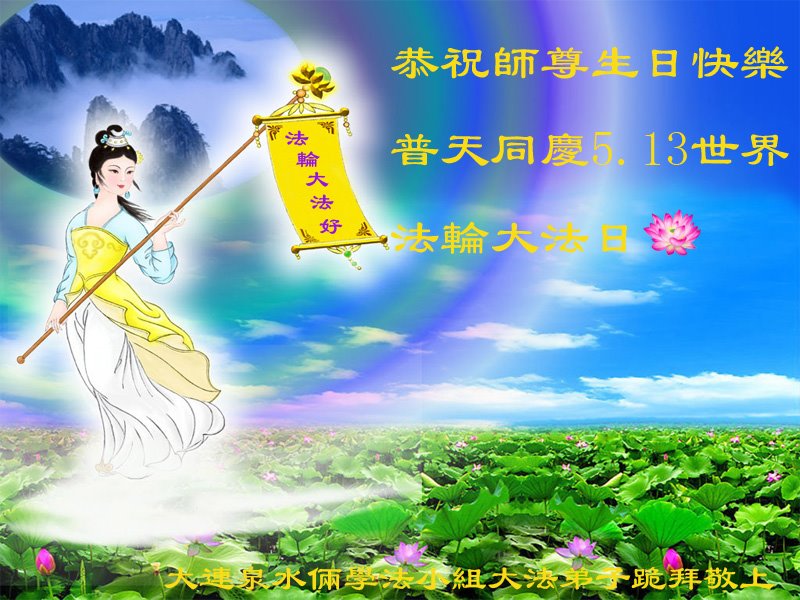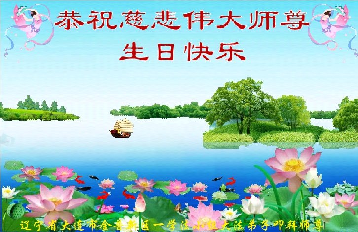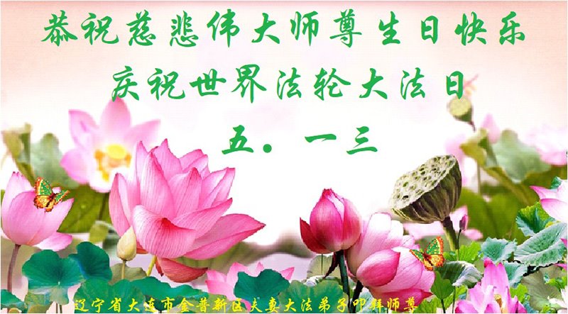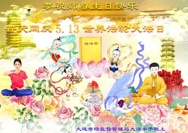 Falun Dafa praktikanti iz grada Daliana žele uvaženom Učitelju sretan rođendan i slave Svjetski dan Falun Dafe!