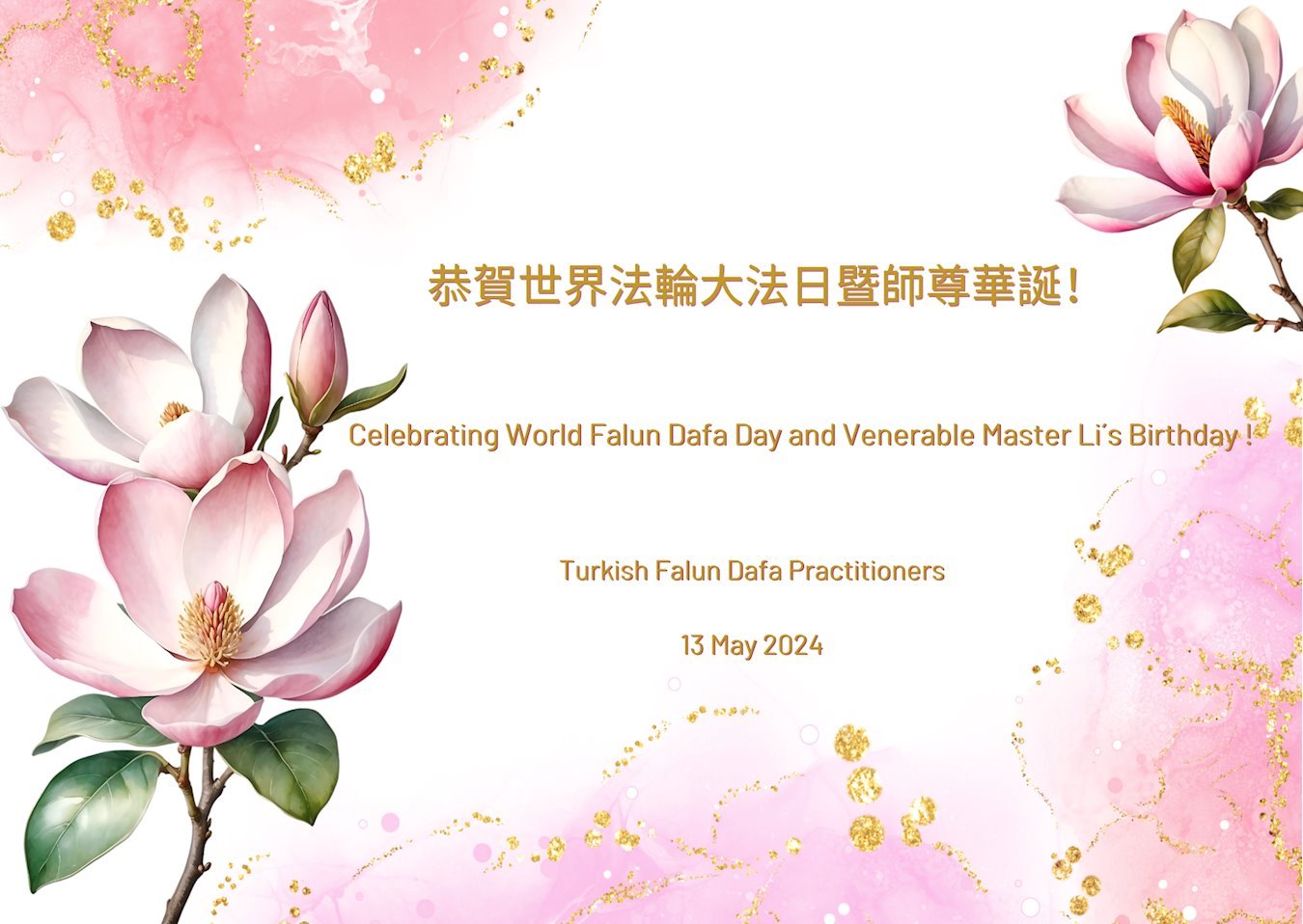 Portugalski praktikanti čestitaju rođendan Učitelju Liju!Praktikanti iz francuskog govornog područja u Švicarskoj slave Svjetski dan Falun Dafa.Ruski praktikanti žele sretan rođendan Učitelju Liju!Primljene su čestitke i od praktikanata iz Turske.Praktikanti iz Tajlanda žele sretan rođendan Učitelju Liju!Praktikanti iz Jermenije žele Učitelju Liju srećan rođendan!Čestitke su primljne i iz Newcastlea, Ujedinjeno Kraljevstvo.Škotski praktikanti žele sretan rođendan Učitelju Liju!Primljene su čestitke i praktikanata iz Singapura.
