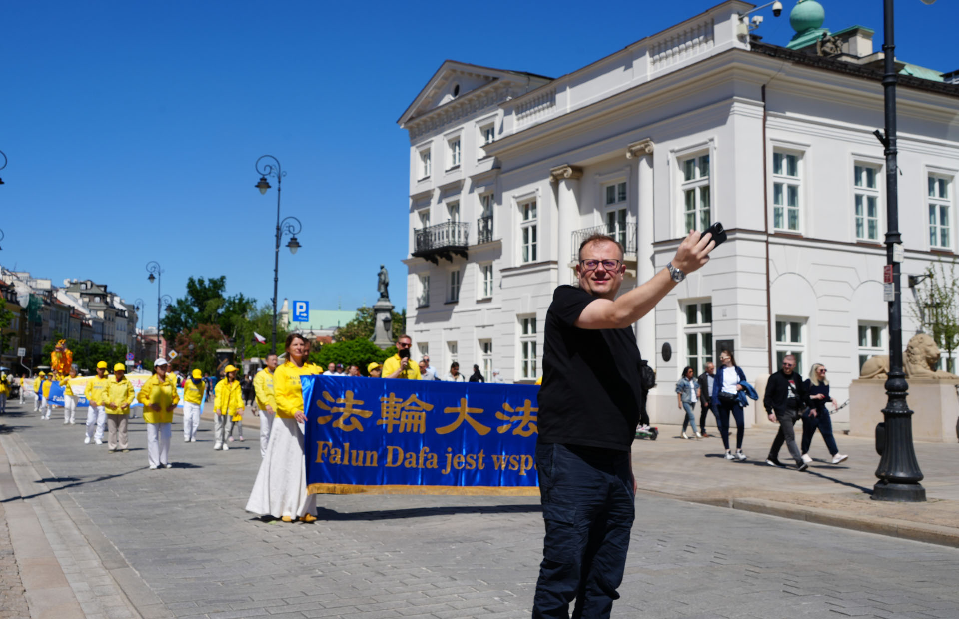 Artur Siemiński živi u Varšavi i vodi vlastiti biznis. Uživao je gledajući paradu i slaže se sa riječima na transparentima. Rekao je da progonom velikog broja nevinih Falun Dafa praktikanata zbog njihovog vjerovanja režim KPK naliči Hitlerovom. Također je rekao da je žalosno da mnogi ljudi brinu samo o svojim interesima i ignorišu nešto tako važno.