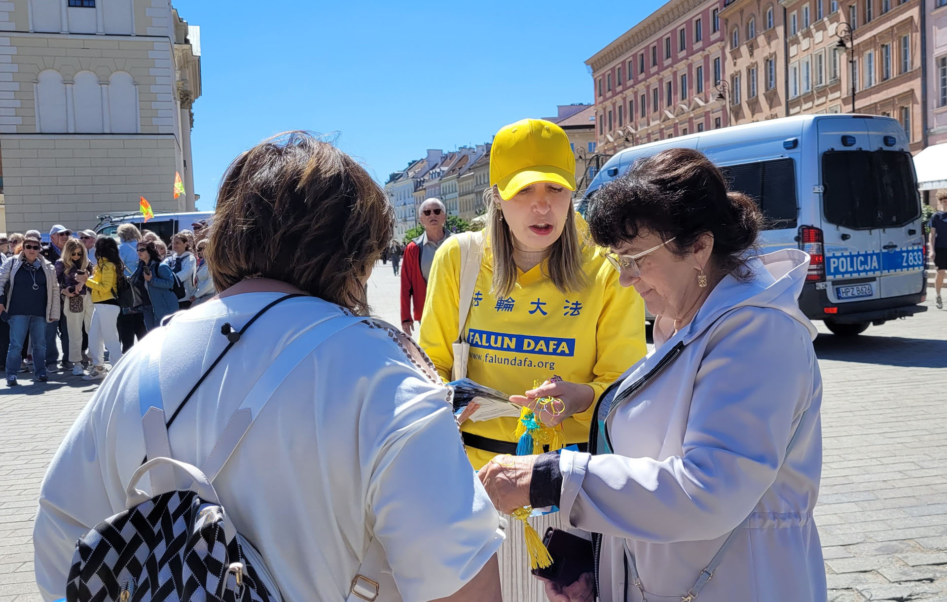 Jedan je Kinez bio u posjeti Starom gradu sa svojom porodicom. Nasmiješio se praktikantu i rekao da zna za Falun Dafa. “Zanimljivo je da toliko Poljaka uči Falun Dafa i tradicionalnu kinesku kulturu, ali KPK opako potiskuje ovu praksu,” rekao je. “Partija je tako loša i nadam se da će uskoro završiti.”