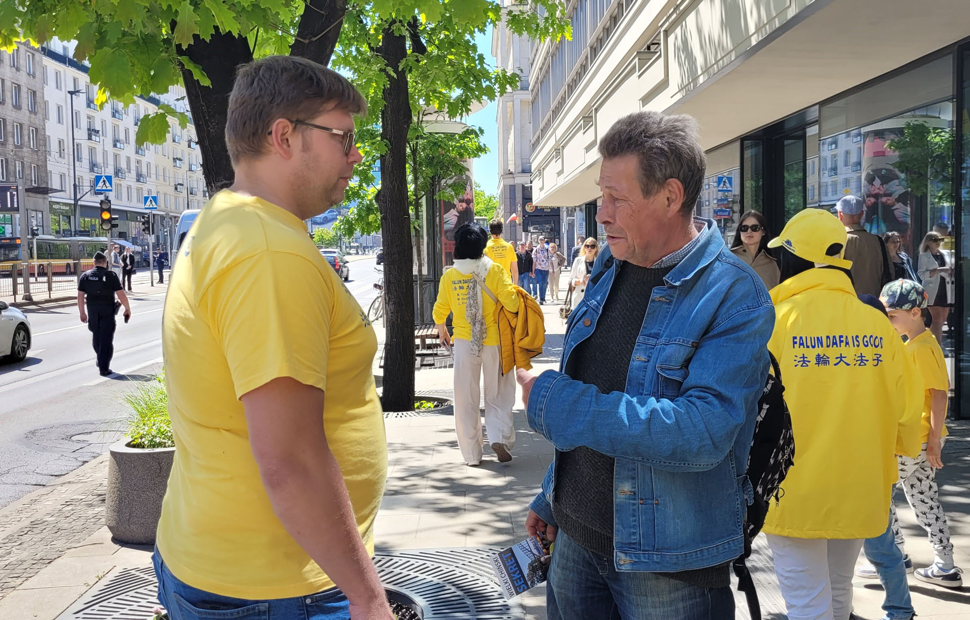 Praktikantica im je objasnila da se Falun Dafa prakticira u preko 100 zemalja i da praktikanti čitaju glavna učenja u knjizi Zhuan Falun koja su dostupna na mnogim jezicima. Osim što im je govorila o dobrobitima koje je dobila od same Falun Dafa, praktikantica im je također razjasnila i zablude uzrokovane klevetničkom propagandom Komunističke partije Kine (KPK). Dvije djevojke su klimnule s razumijevanjem, zahvalile joj se i rekle da će pročitati više o praksi.