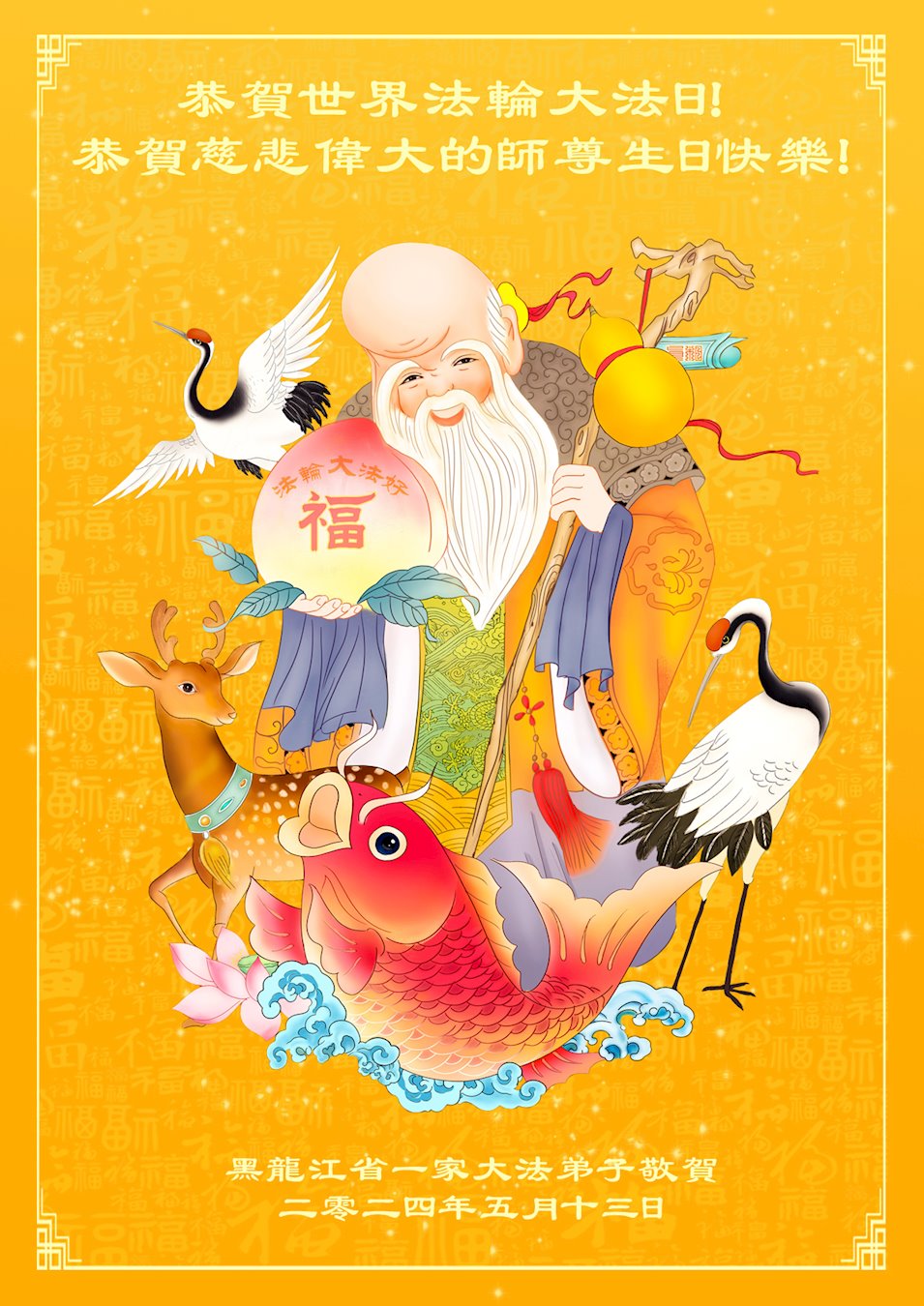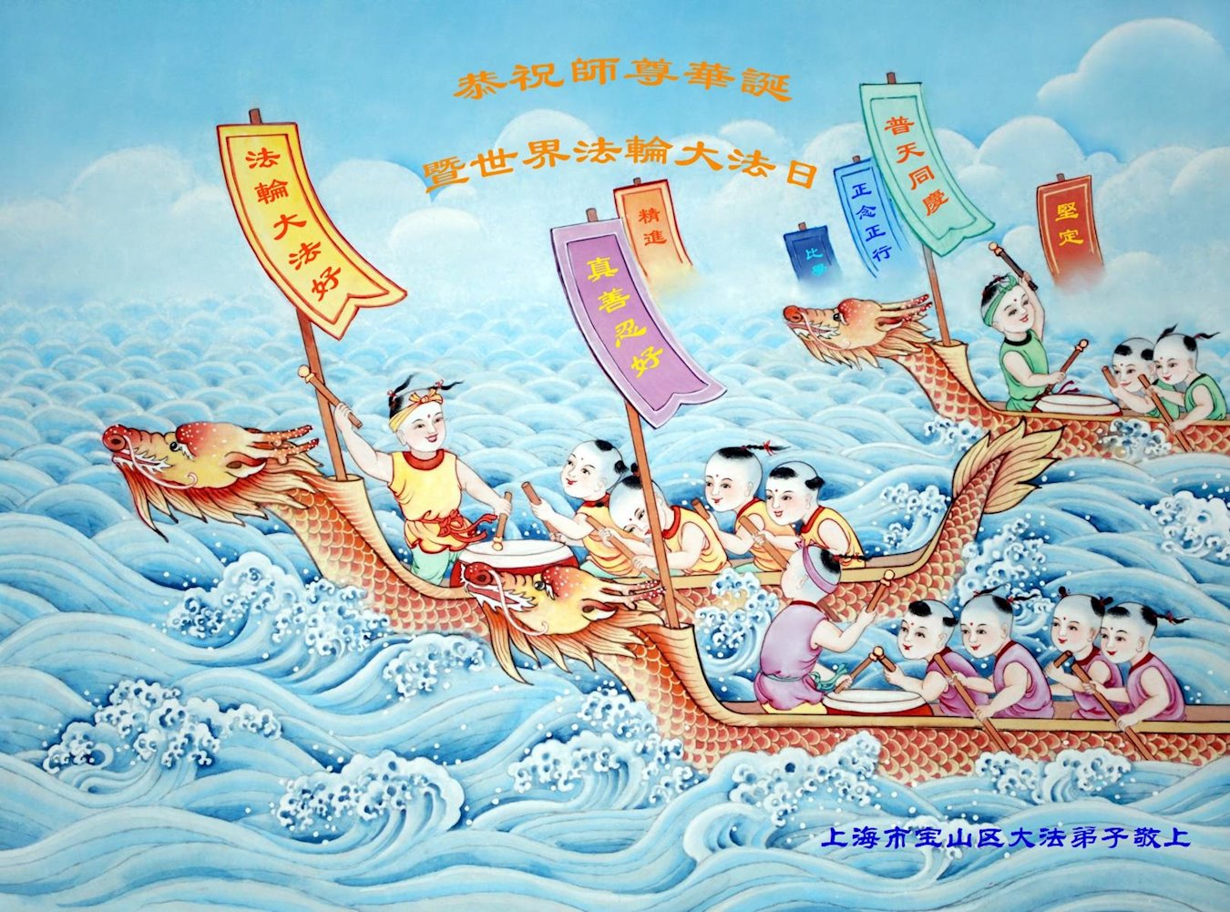 Kao i obično, na ovaj Svetski dan Falun Dafe, praktikanti u Kini su nastavili da šalju svoje iskrene čestitke proslavljajući javno predstavljanje Dafe i želeći Učitelju Liju srećan rođendan. Ni iskazuju svoju duboku zahvalnost Učitelju i obećavaju da će biti marljiviji u svojoj kultivaciji i pomoći većem broju ljudi da sazna koliko je Falun Dafa divna.