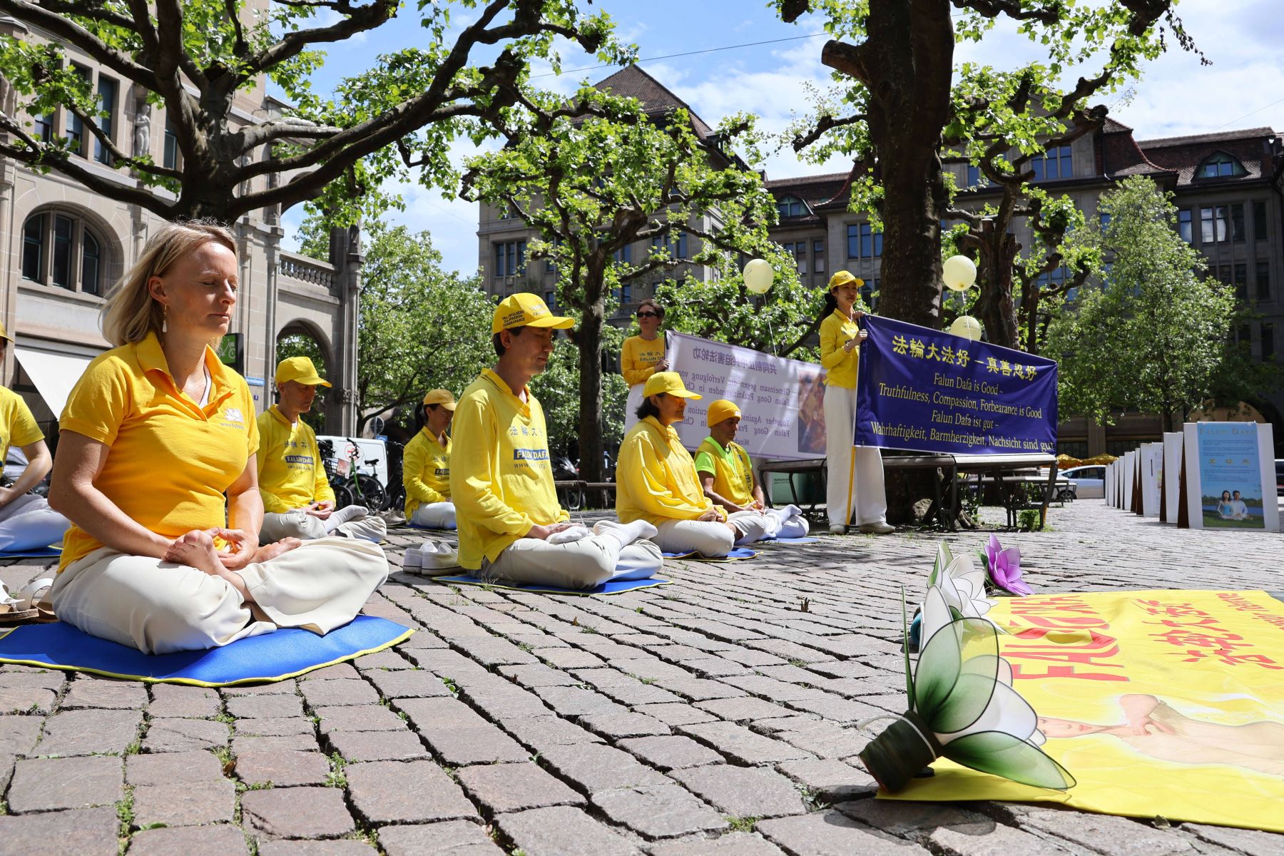 „Cirih je poznat po svojih 1200 fontana, a čista voda je izvor našeg života. Ali prosperitet ljudskog društva zahteva ne samo čistu vodu, već i čist mentalitet i duhovno stanje“, rekao je Falun Dafa praktikant tokom svog uvodnog govora na događaju povodom obeležavanja Svetskog dana Falun Dafe na Verdmuhleplatzu u Cirihu 18. maja 2024.