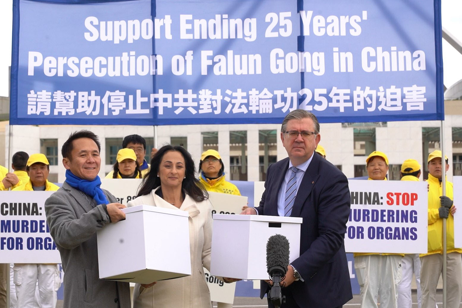 Falun Gong praktikanti širom Australije su nedavno prikupljali potpise Australaca iz svih sfera života za peticiju. Peticija poziva vladu da pomogne u okončanju 25-godišnjeg progona od strane KPK i poziva australsku vladu da poduzme zakonodavne i druge radnje kako bi zaustavila zločin žetve živih organa od strane KPK.