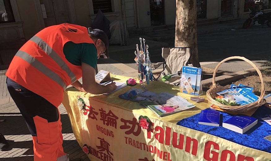 Praktikanti su 22. juna 2024. postavili informativni štand na prometnim ulicama Dragunjana, u jugoistočnom regionu Le Var u Francuskoj. Oni su predstavljali Falun Dafu i pružali informacije o progonu Komunističke partije Kine (KPK), uključujući uzimanje organa od praktikanata.