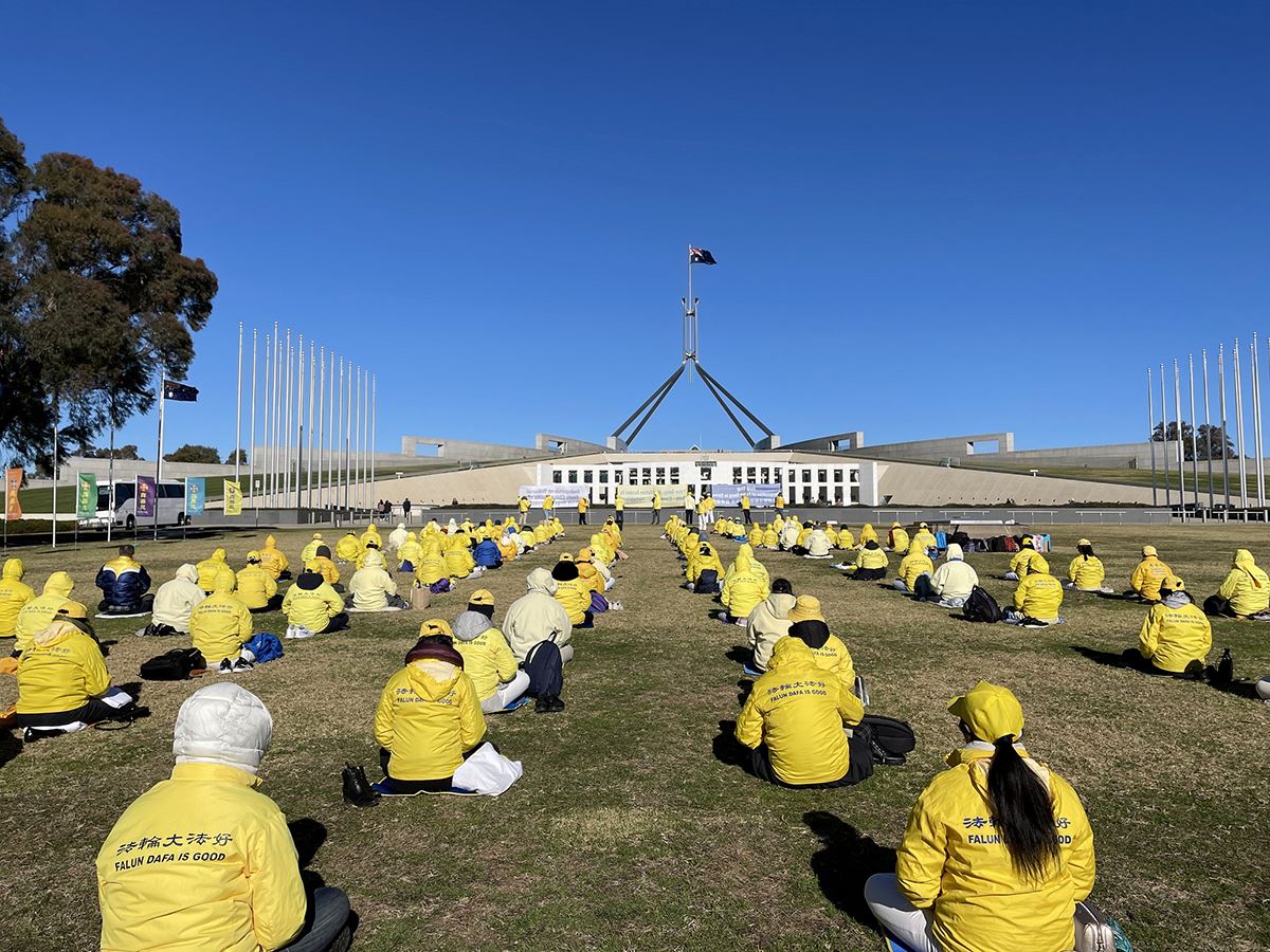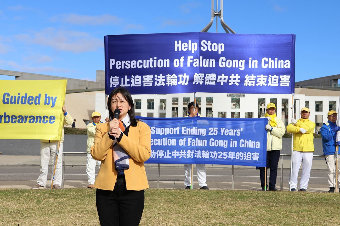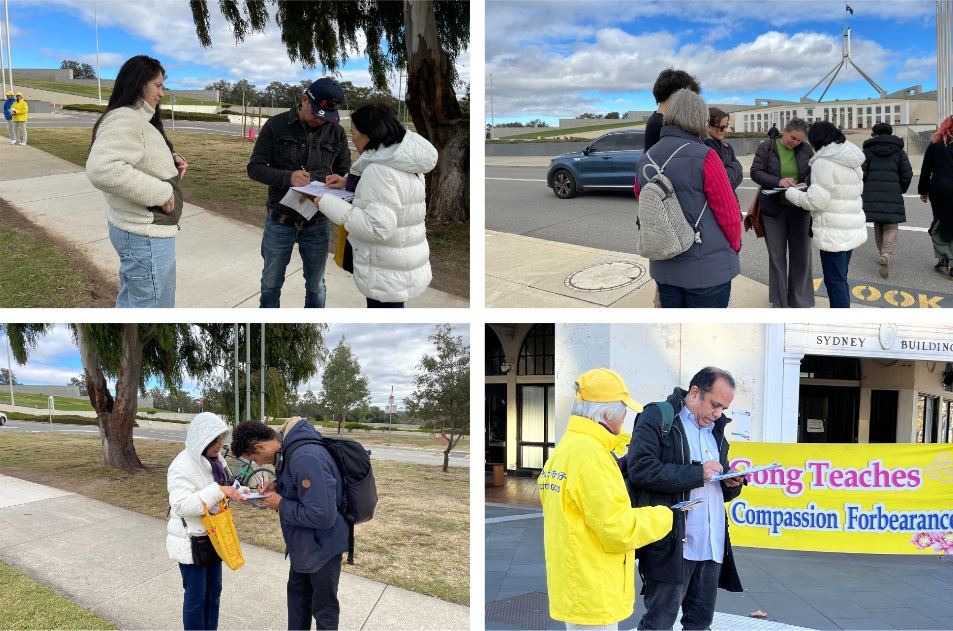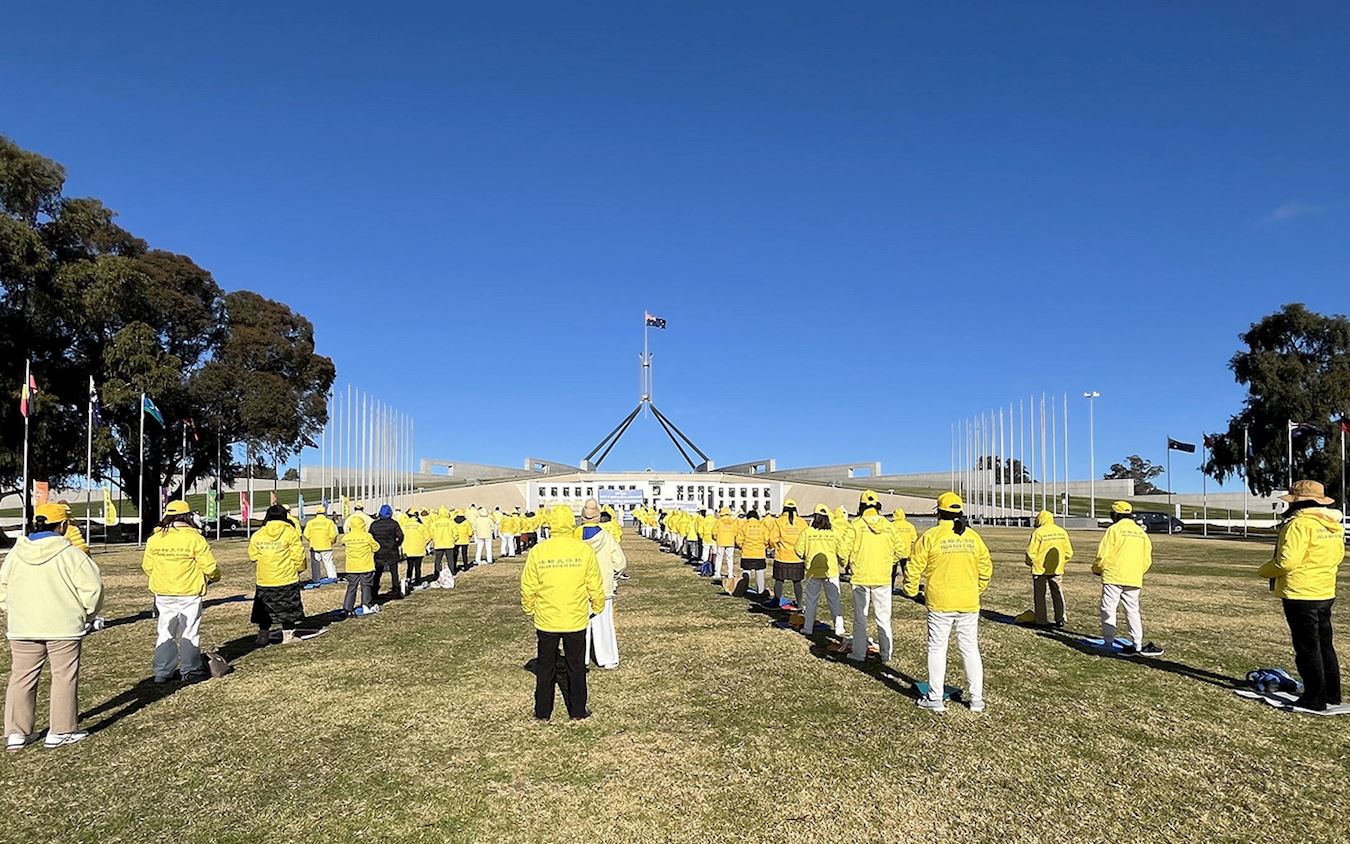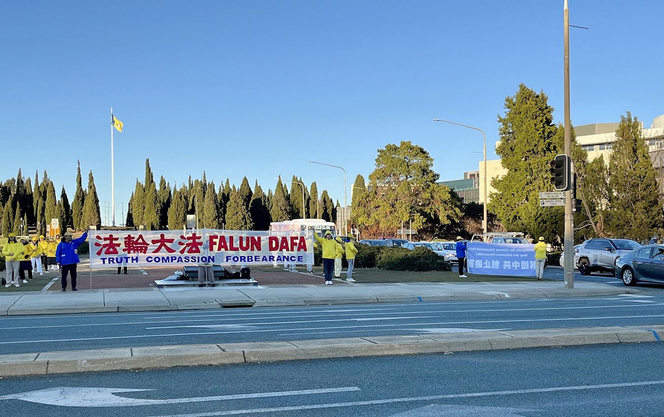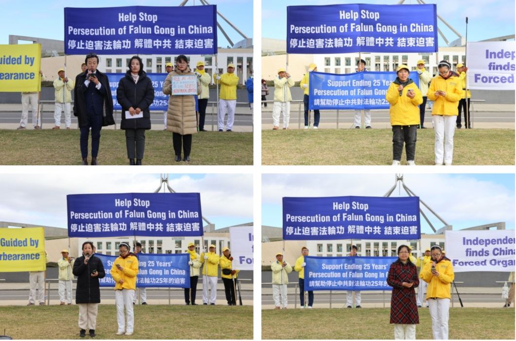 Progon Falun Gonga u Kini je počeo 20. jula 1999. Povodom 25. godine tekućeg progona, praktikanti iz raznih dijelova Australije su se okupili u glavnom gradu Canberri u periodu od 1. do 4. jula 2024. da bi održali različite aktivnosti uključujući mirne proteste i skup. Oni su pozvali australijsku vladu da osudi Komunističku partiju Kine (KPK) zbog njenog kontinuiranog progona Falun Gonga i da zaustavi zločine protiv čovječnosti, uključujući prisilnu žetvu organa, donošenjem prijedloga zakona ili sličnih uredbi.