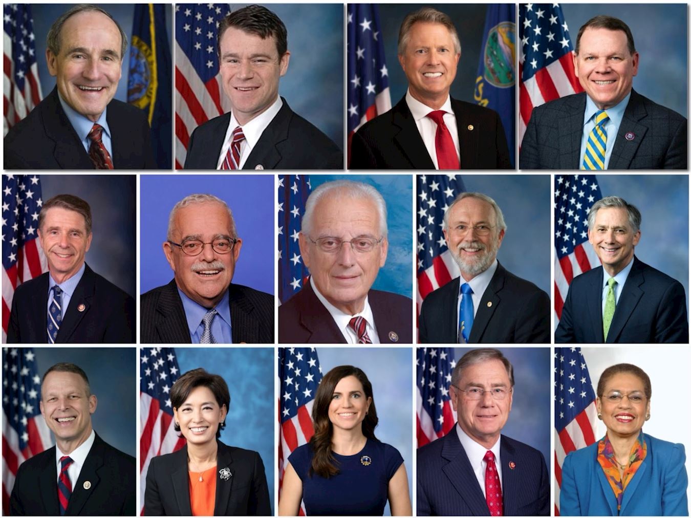 Drugi red: zastupnici Rob Wittman i Gerald “Gerry” Connolly iz Virginije, zastupnik Bill Pascrell Jr. iz New Jerseya, zastupnik Dan Newhouse iz Washingtona, zastupnik French Hill iz Arkansasa.