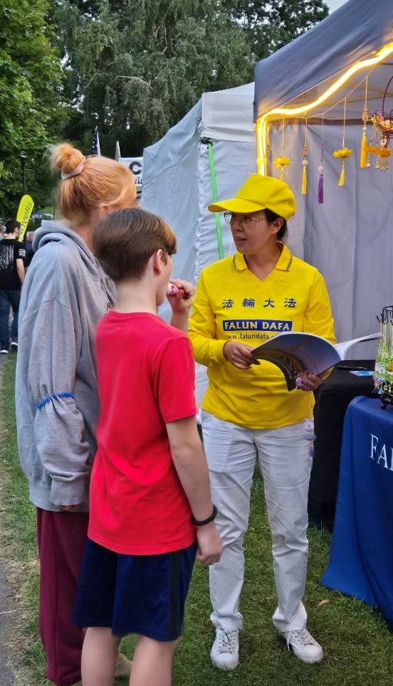 Mladić koji je prisustvovao festivalu se informao o Falun Dafa i potpisao je peticiju. Vratio se te večeri da pomogne praktikantima da pospreme svoje šatore.