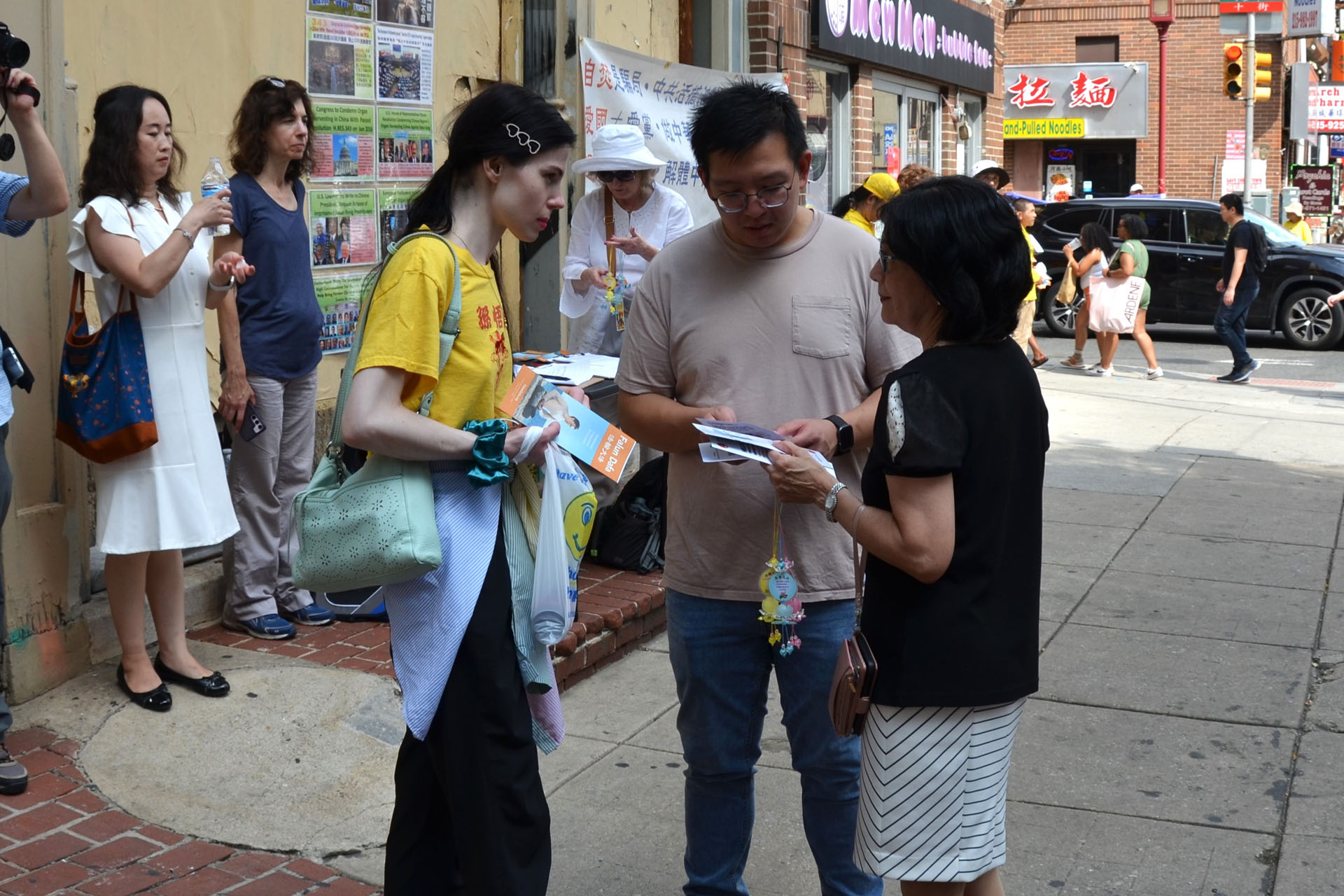 Falun Gong praktikanti održali su skup u kineskoj četvrti Philadelphije 31. kolovoza 2024. kako bi razotkrili brutalni progon Falun Gonga kojeg provodi Komunistička partija Kine (KPK). Skup je istaknuo prisilno vađenje organa zatvorenicima savjesti, kojeg provodi KPK. Govornici su naglasili da je ovo kritično pitanje ne samo za Kineze, već i za Amerikance. Nekoliko prolaznika zahvalilo je praktikantima na njihovim naporima da razotkriju ove zločine i rekli su da će pomoći prenijeti informacije većem broju ljudi.