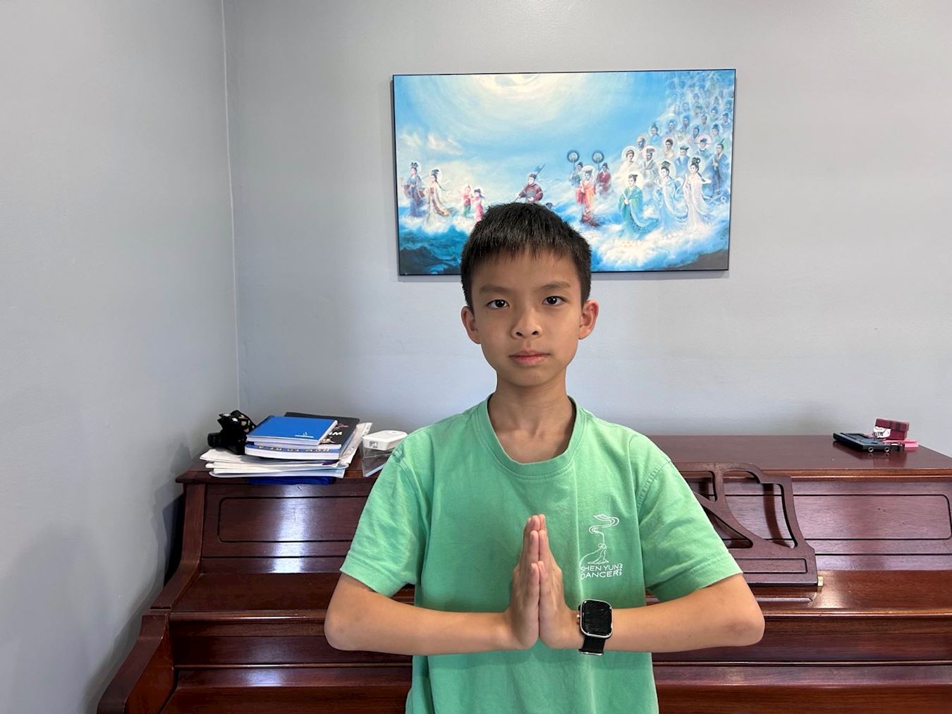 Junren je također prisustvovao ceremoniji podizanja zastave na Svjetski dan Falun Dafa. Nada se da će više ljudi naučiti o dobrobitima prakticiranja Dafa. Junren šalje čestitke Učitelju Liju: "Želim Učitelju sretan Praznik sredine jeseni! Nadam se da ću moći narasti i jednog dana plesati uz Shen Yun!”