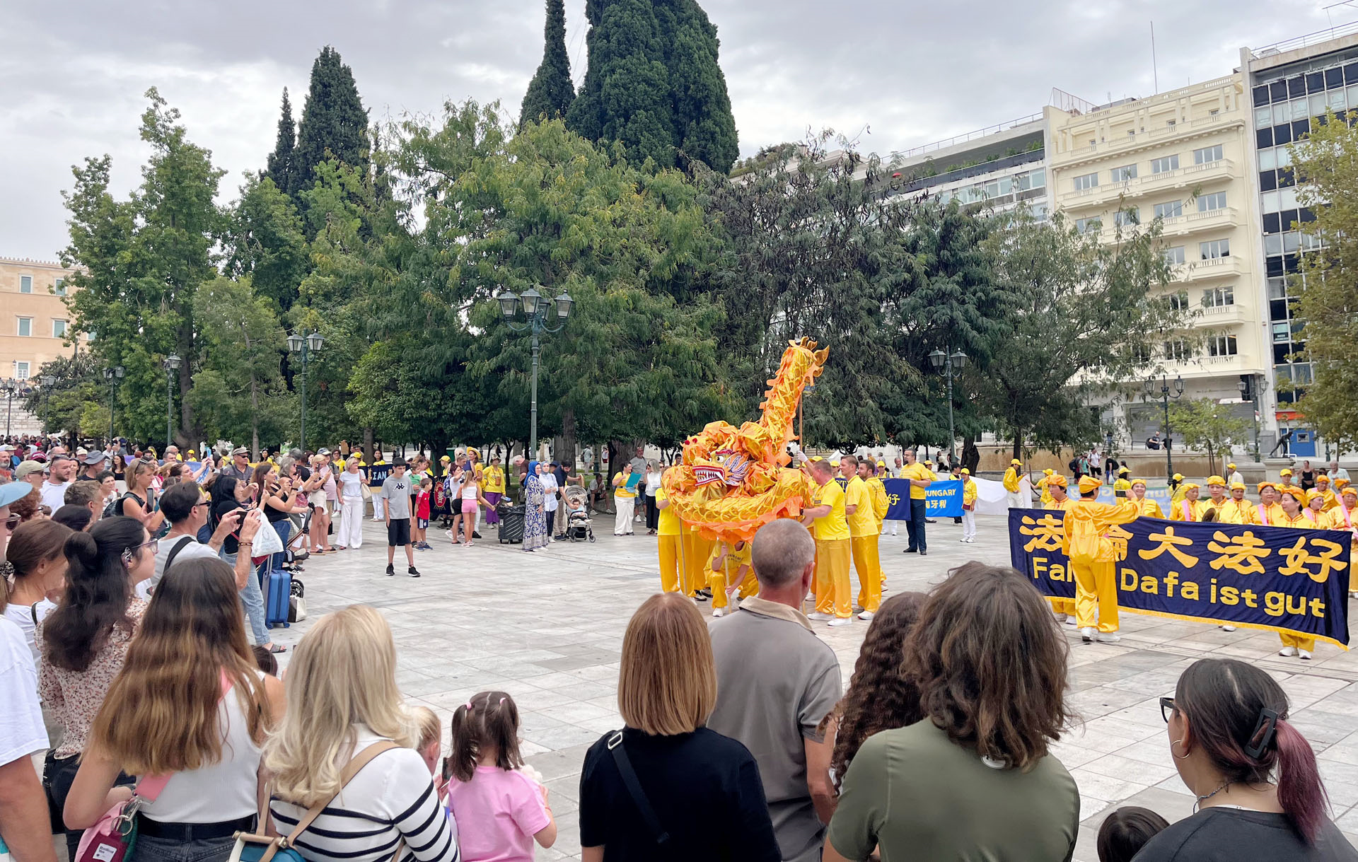 Evropski Tian Guo Marching Band i Falun Dafa praktikanti iz preko 12 zemalja su, 4. i 5. oktobra 2024. godine održali marševe i skupove u Atini, glavnom gradu Grčke. Oni su stanovnicima Grčke i turistima predstavili Falun Dafa (također poznat kao Falun Gong) i pozvali sve dijelove društva da obrate pažnju i pomognu da se zaustavi 25-godišnji progon ove prakse od strane Komunističke partije Kine (KPK).
