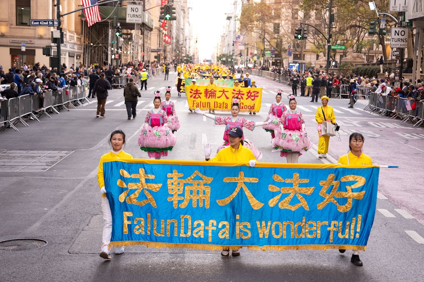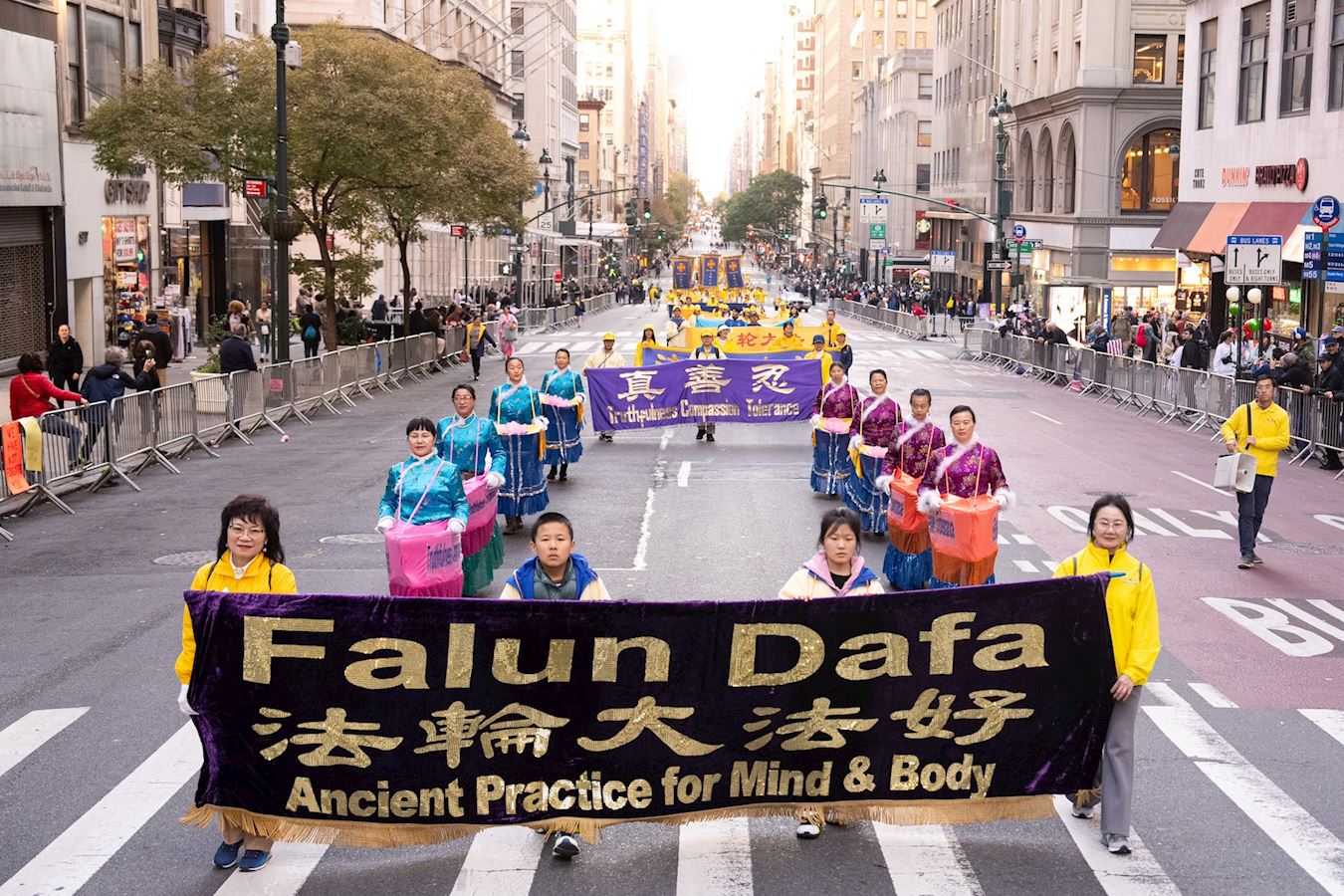 Kao najveća kineska grupa, Falun Dafa praktikanti učestvovali su u paradi već 20. godinu zaredom marširajući na njenom začelju. Doveli su Tian Guo Marching Band, i demonstrirali Falun Dafa vježbe, zajedno sa barjaktarskom grupom, pokretnim splavom, plesom lotosa, dobošarskom grupom i LED vozilom. Impresioniran prezentacijom, širenjem pozitivne energije i transparentima s tradicionalnim vrijednostima na „Najpatriotskoj milji Amerike“, jedan gledalac je rekao: „Ovaj svijet će postati bolje mjesto ako više ljudi bude prakticiralo Falun Dafa.“