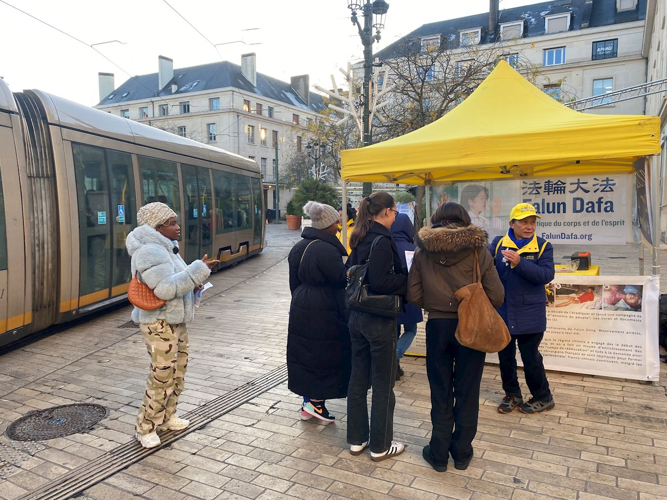 Praktikanti su 15. novembra održali aktivnosti u Toursu i u Orléansu 22. novembra 2024. Na njima su predstavili Falun Dafa i ljudima govorili o 25-godišnjem brutalnom progonu ove prakse u Kini.