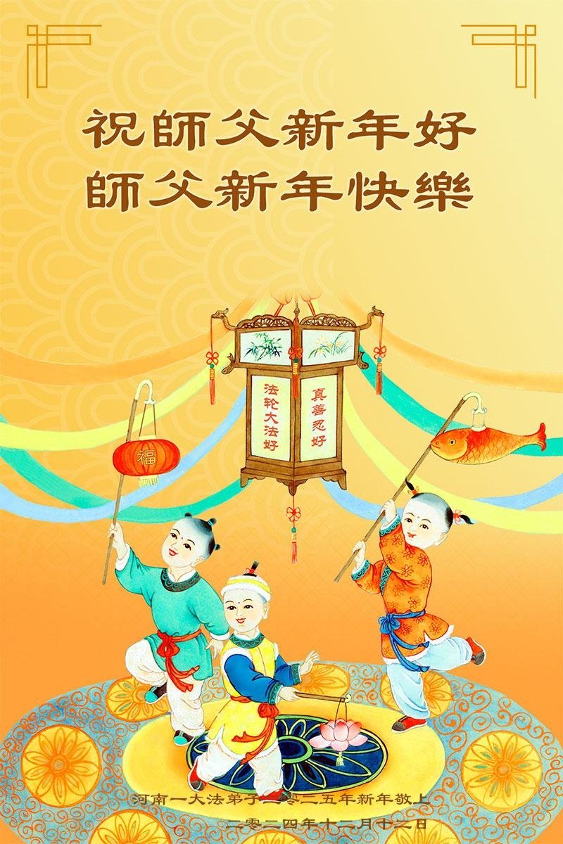 Falun Dafa praktikanti iz provincije Henan s poštovanjem žele Učitelju Li Hongdžiju srećnu Novu godinu (18 čestitki)