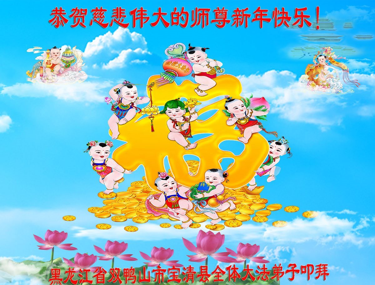 Falun Dafa praktikanti iz provincije Heilongđiang s poštovanjem žele Učitelju Li Hongdžiju srećnu Novu godinu (19 čestitki)