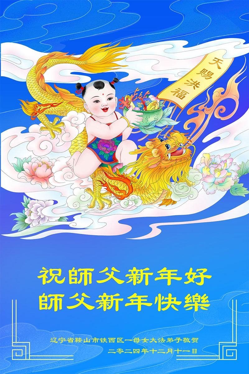 Falun Dafa praktikanti iz provincije Liaoning s poštovanjem žele Učitelju Li Hongdžju srećnu Novu godinu (18 čestitki)