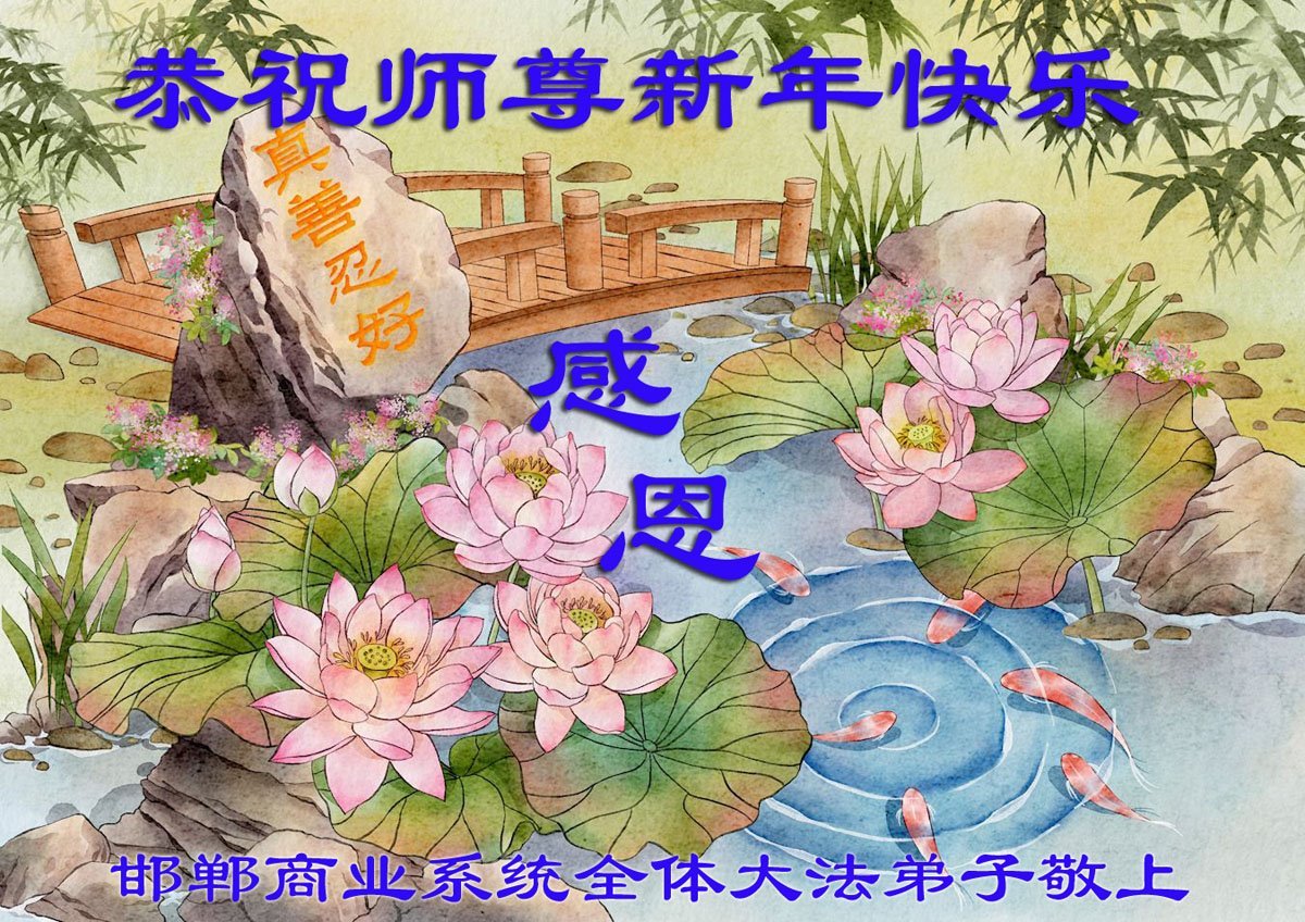 Nadolaskom Nove godine, praktikanti iz susjednih odbora grada Nanjinga, provincija Jiangsu, napisali su da znaju kako je Učitelj silno propatio za praktikante. “Kako vrijeme prolazi, mi praktikanti bismo također trebali biti odlučniji i zreliji. Naše zdravlje i vještine dolaze od Falun Dafa. Naša odlučnost da slijedimo Istinitost-Dobrodušnost-Toleranciju će nam pomoći nadvladati poteškoće i potaknuti naš stalni napredak. Hvala vam, Učitelju Li, i sretna Nova godina!”