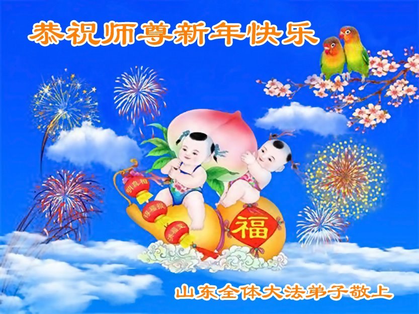 Falun Dafa praktikanti iz provincije Šandong s poštovanjem žele Učitelju Li Hongdžiju srećnu Novu godinu (18 čestitki)