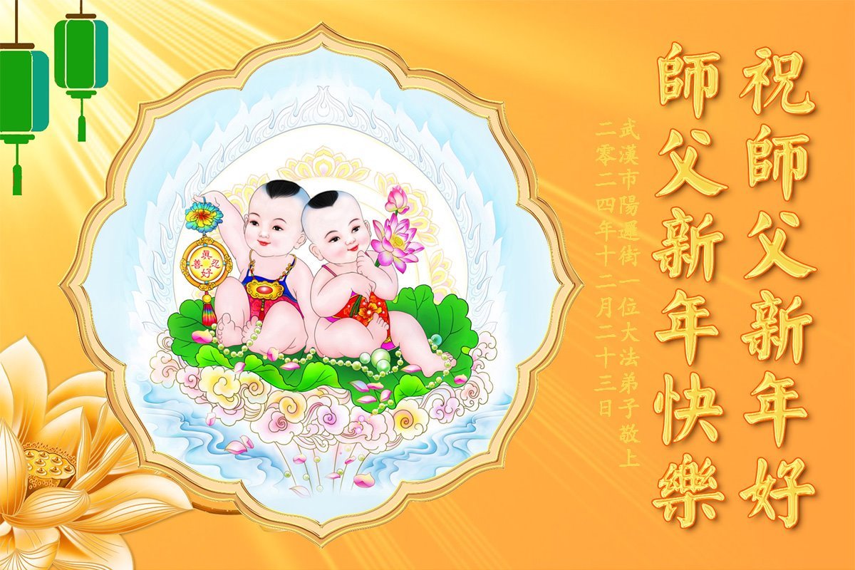 Falun Dafa praktikanti iz provincije Hubei s poštovanjem žele Učitelju Li Hongdžiju srećnu Novu godinu (18 čestitki)