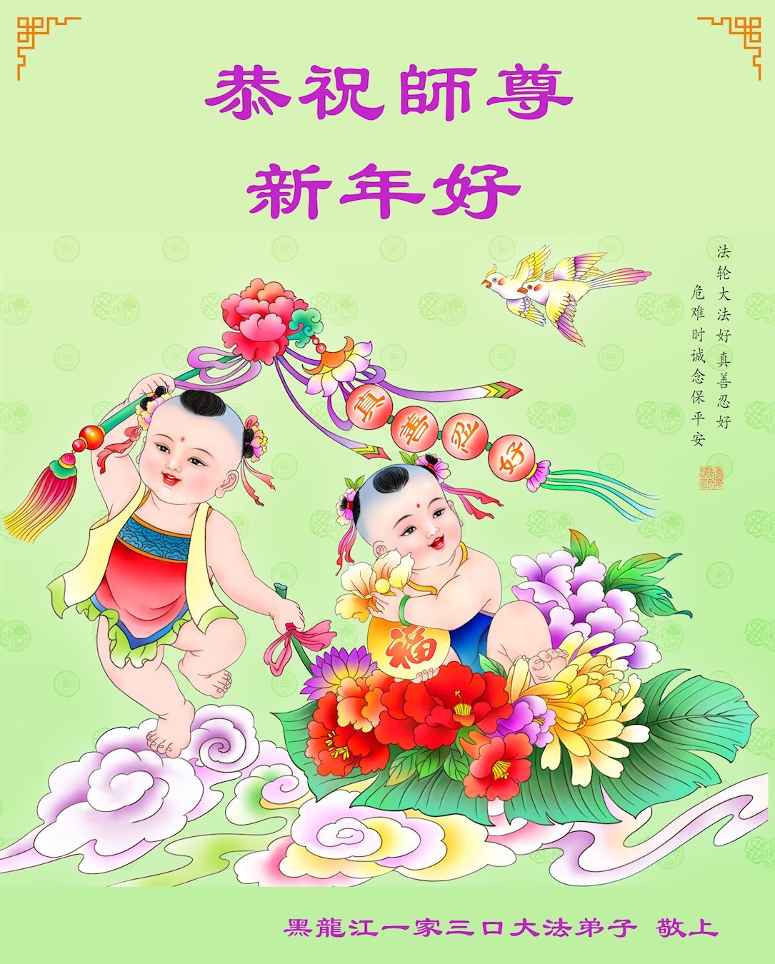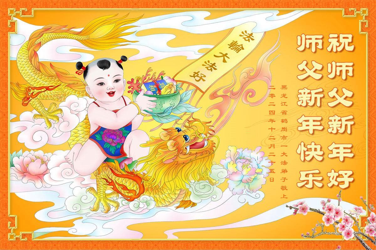 Falun Dafa praktikanti iz provincije Heilongjiang s poštovanjem žele Učitelju Li Hongdžiju srećnu Novu godinu (18 čestitki)