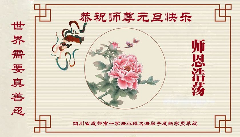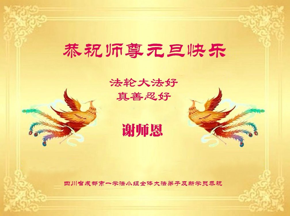 Falun Dafa praktikanti i novi praktikanti iz grupe za učenje Fa u gradu Chengdu, provincija Sichuan, s poštovanjem žele Učitelju sretnu Novu godinu!