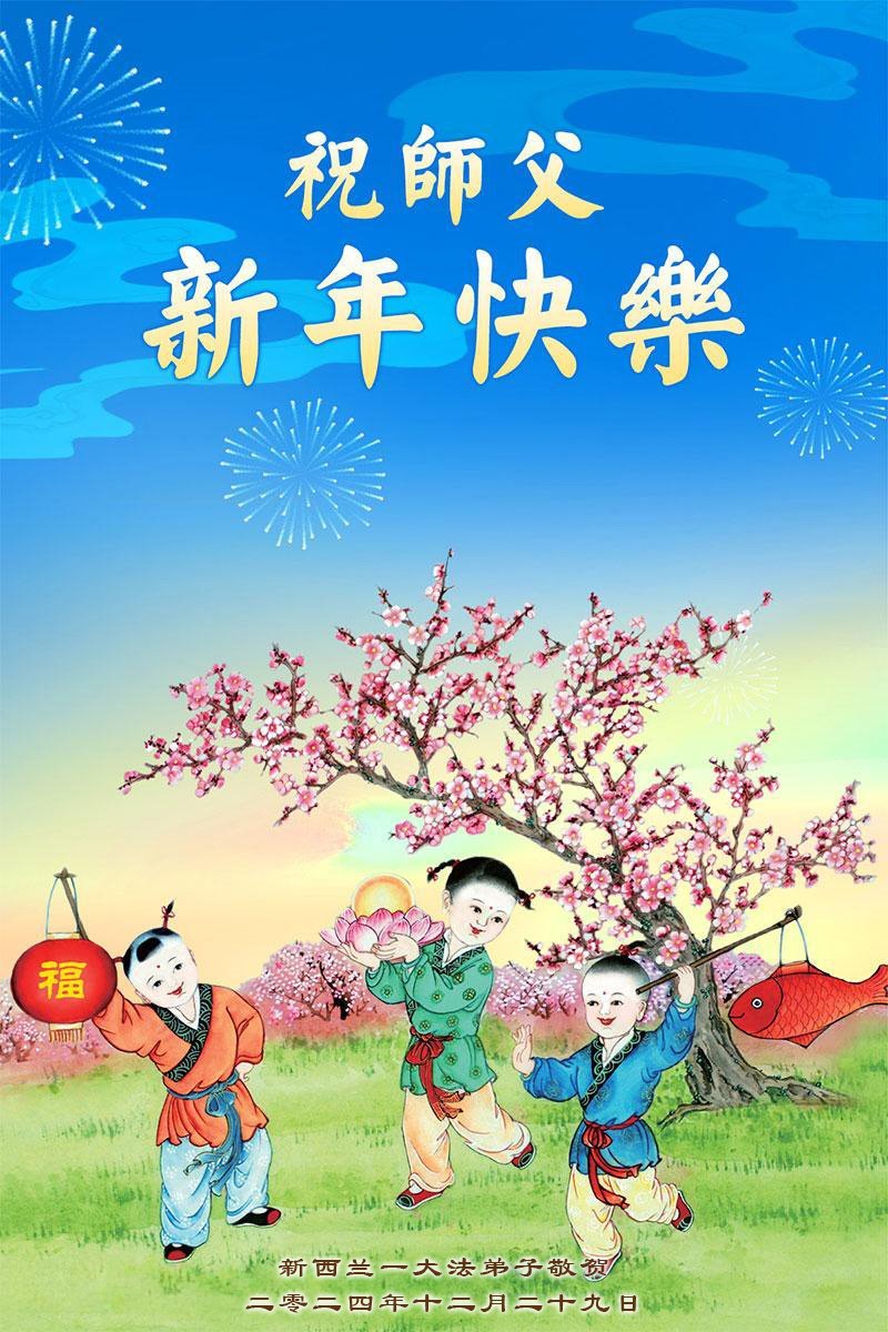 Falun Dafa praktikanti iz grupe za učenje Fa na Novom Zelandu s poštovanjem žele Učitelju sretnu Novu godinu
