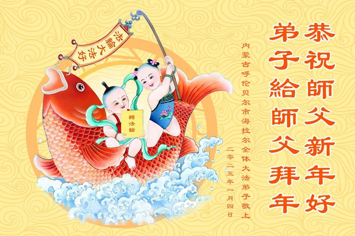 Falun Dafa praktikanti iz autonomne regije Unutrašnja Mongolija s poštovanjem žele Učitelju Li Hongdžiju srećnu kinesku Novu godinu (19 čestitki)